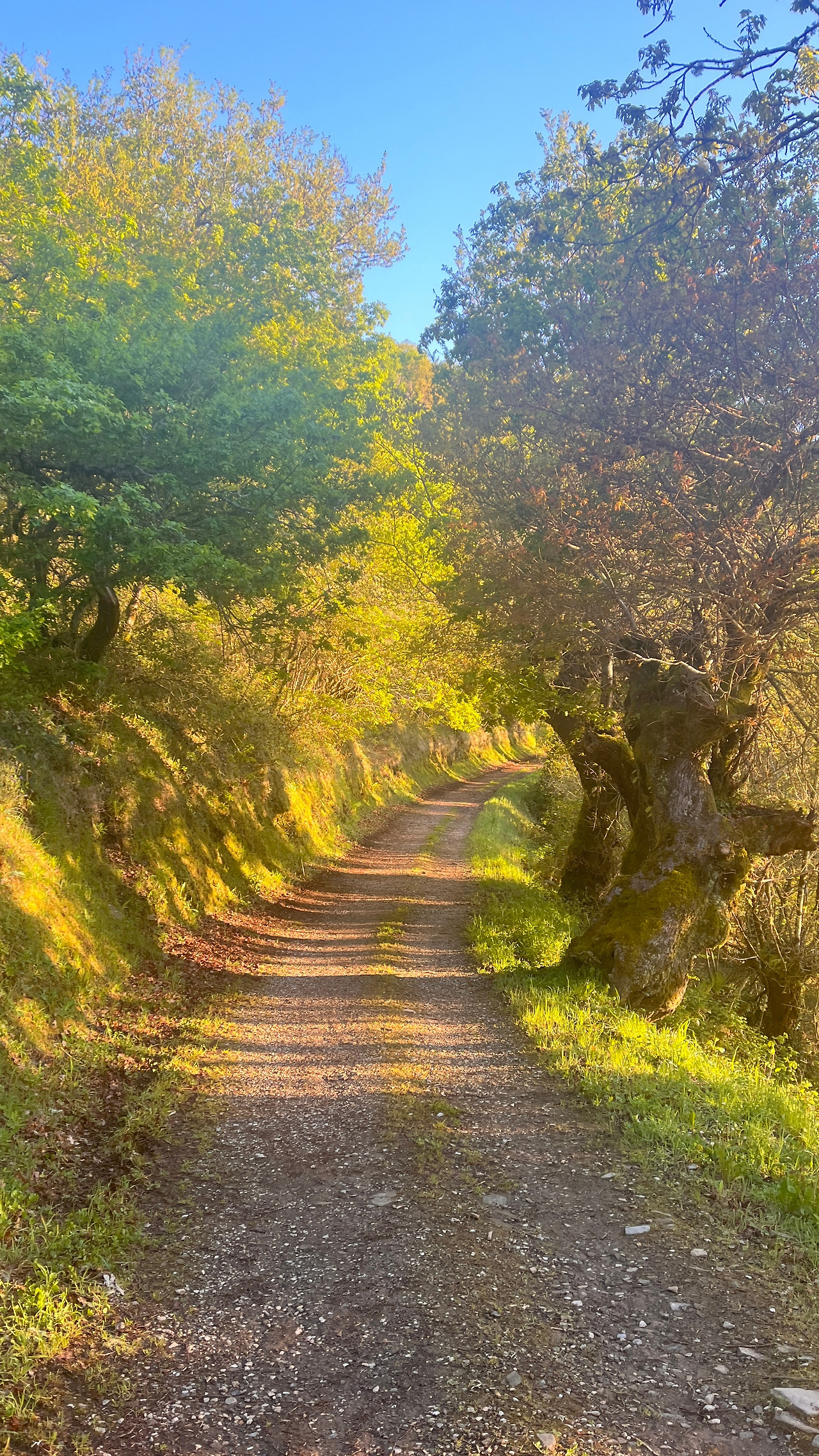새벽에 또 길을 나섰다. 마침 떠나는 커플이 있어 같이 가면 되겠다 안심이 되었다. 그런데 그들이 6시에 문을 연 바로 앞 카페에 들어간다. 이렇게 일찍 먹으면 속이 더부룩하다. 나는 내 갈 길을 가야겠다 마음을 먹었다. 유독 마을이 어둡다. 숲으로 바로 이어진다. 헤드랜턴을 켜고 가는데 나무가 높아 해가 잘 보이지 않는다. 아까 그 커플들이 오겠지 하는 마음으로 천천히 걸었다. 사진도 찍으며 시간을 때웠다. 조금 이따 불빛이 뒤에서 보인다. 반가운 마음이 든다. 엄청난 속도로 앞서간다. 헤드랜턴의 두 불빛이 켜지지 않고 한쪽 불빛만 켜지니 확실히 어둡다. 그래서 나는 그 사람 뒤를 열심히 쫓아갔다. 다섯 발걸음 정도 차이가 나자 그분이 말을 건다. 올라 인사를 하고 출신을 물어보니 포르투갈 사람인데 영어를 못하니 천천히 말해달라고 한다. 출신을 물어보고 어디까지 가니 물어보면 할 말이 없다. 조금 걸으니 해가 뜨고 길이 어둡지 않다. 풍경이 멋있다며 사진을 찍고 조금 거리를 두고 걸었다. 그분이 번역앱으로 묻는다. 내가 계속 너랑 속도를 맞출까, 그냥 갈까라고 영어로 묻는다. 나는 이제 무섭지 않고 언어도 통하지 않으니 같이 갈 이유가 없었다. 쿨하게 괜찮다고 그냥 너 갈길 가라고 했다. 이런 대화는 순례길에서 예의에 어긋나는 것이 아니다. 내가 좀 무서워서 바싹 따라가긴 했지만 계속 같이 갈 이유는 없어서 금방 결정을 내렸다.
