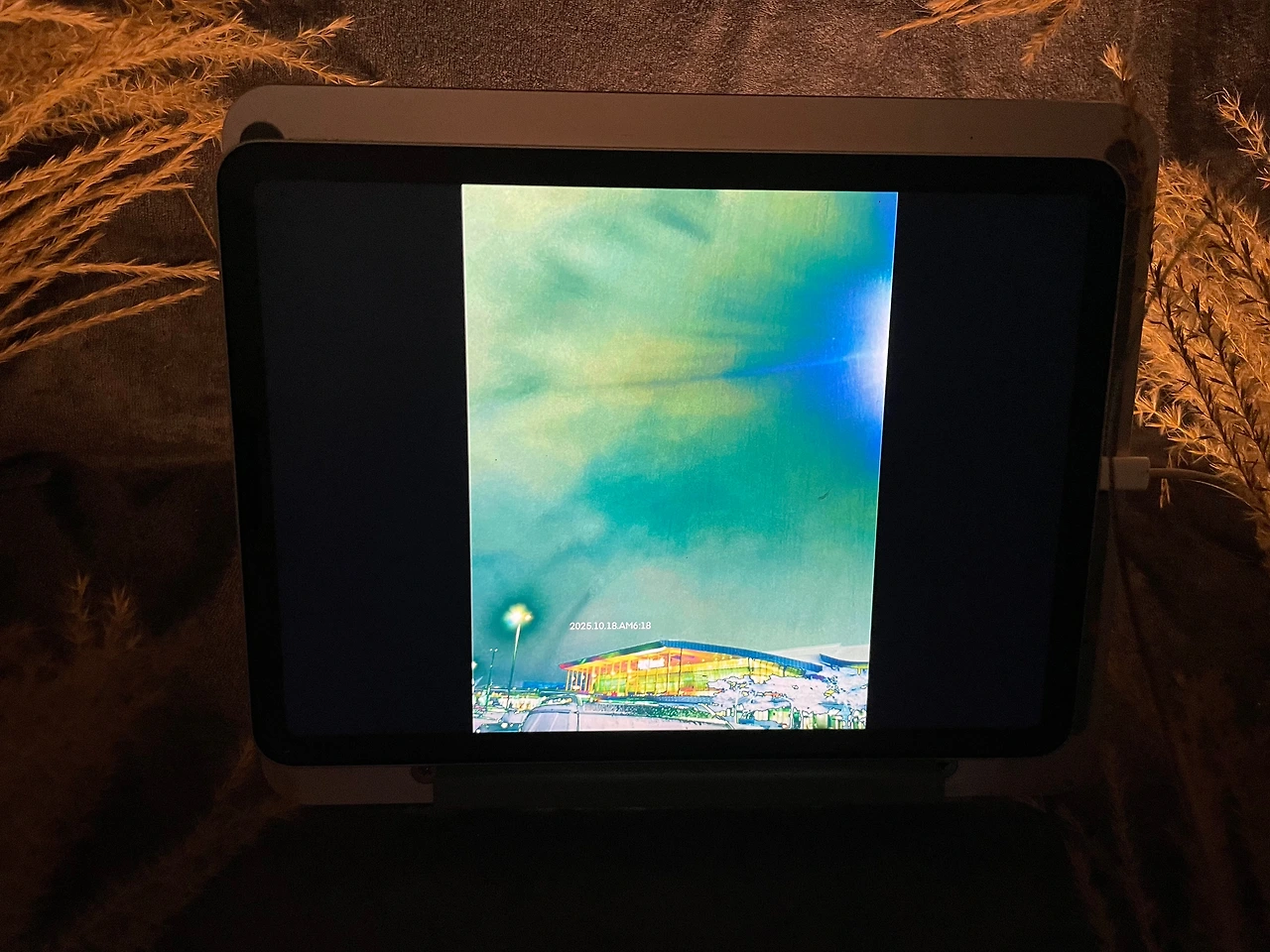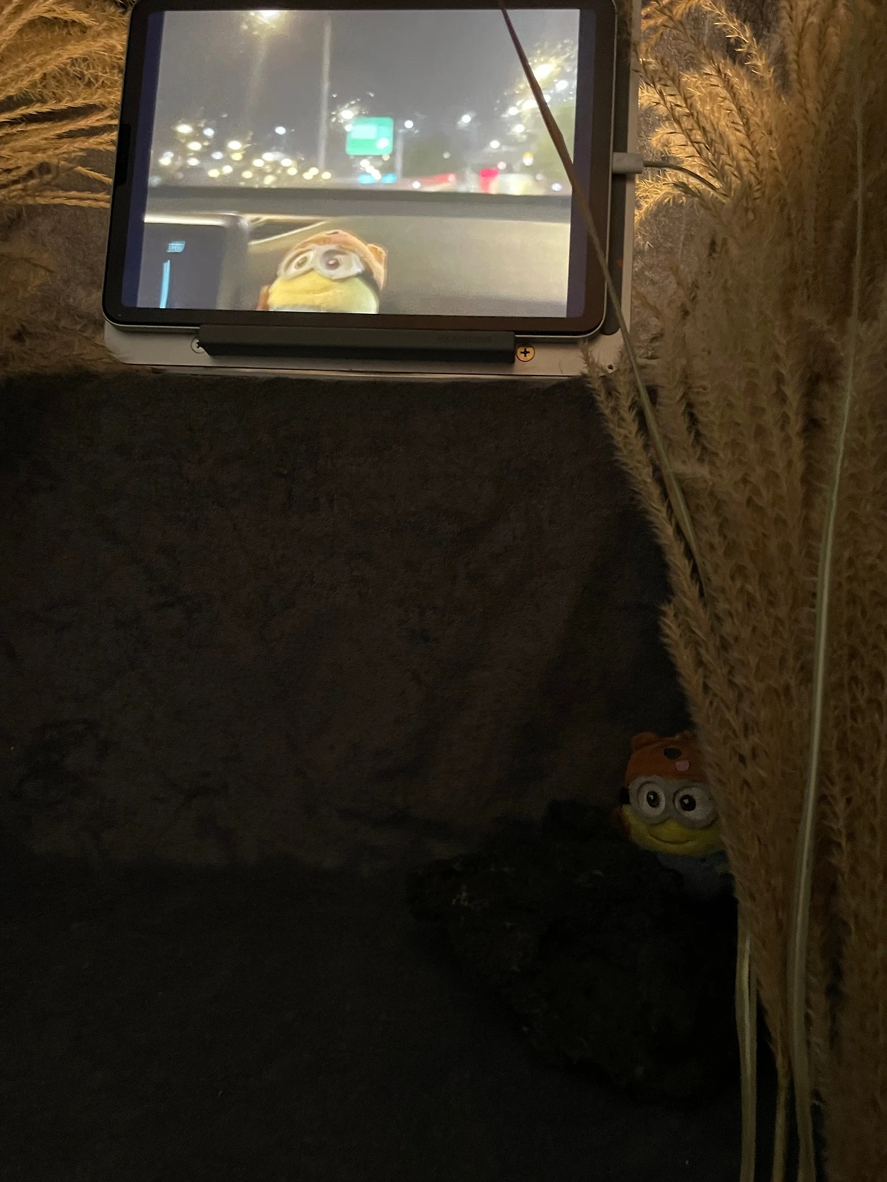 프레임 성수 전시장은 규모가 작다. 작가들은 한 벽을 차지하여 작품을 전시한다. 우리들의 공동작업을 전시할 만한 장소가 없다. 우리는 3층으로 올라가는 계단에 커튼을 치고 새로운 문을 만들었다. 커튼을 열고 들어가면 계단에 놓인 동영상을 보게 된다. 어두운 장소에서 환하게 빛나는 영상은 잠시 바깥세상을 잊게 만드는 순간일 것이며 영상에만 집중할 수 있는 감각의 시간이 될 것이다. 일곱 명의 각자 다른 감각을 함께 자신의 감각도 추가될 것이다.