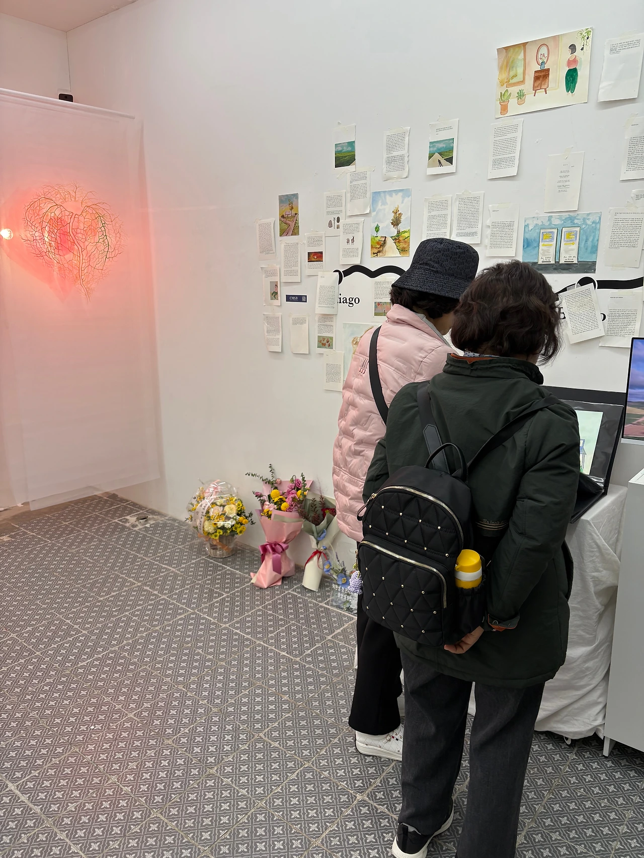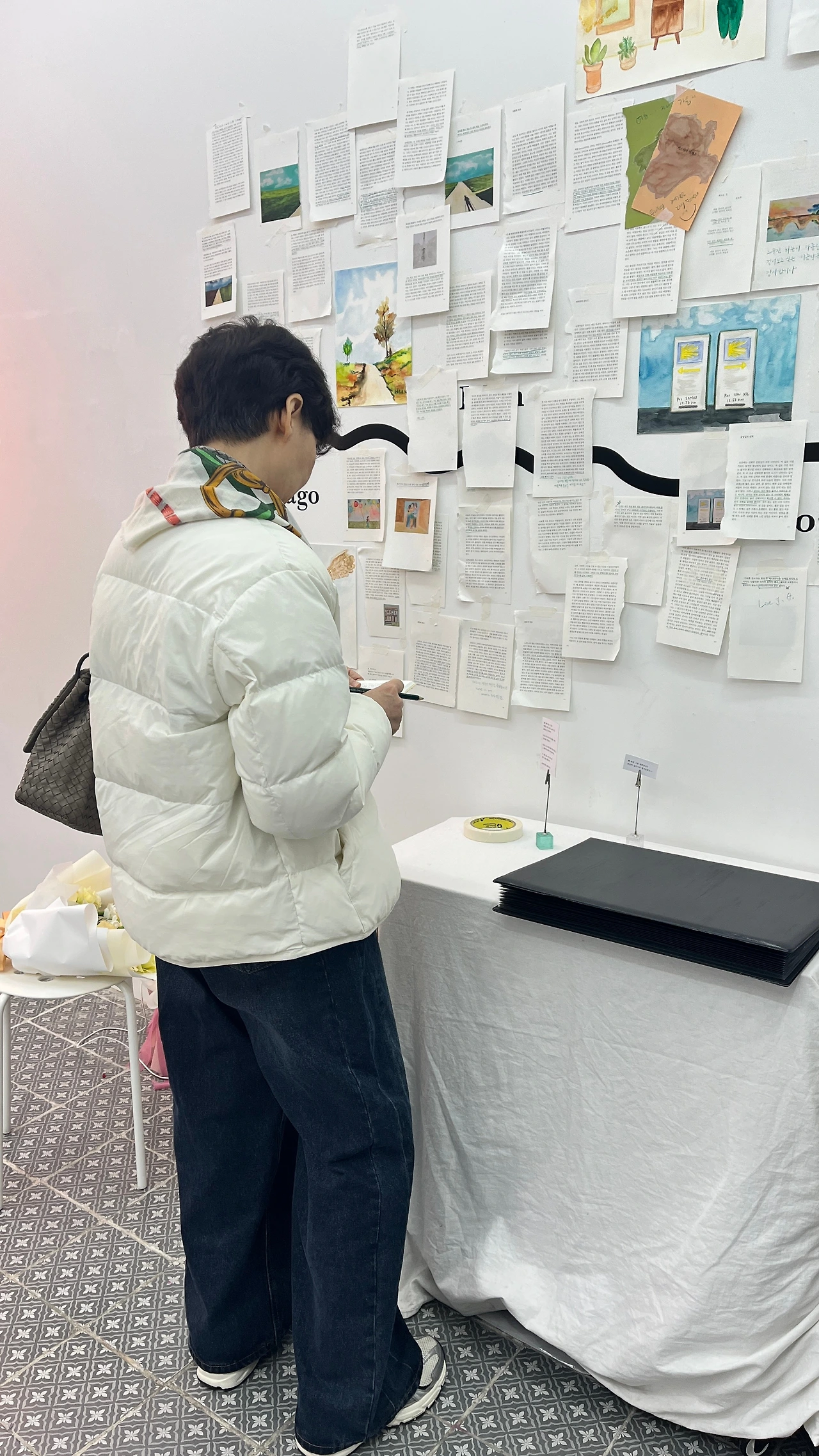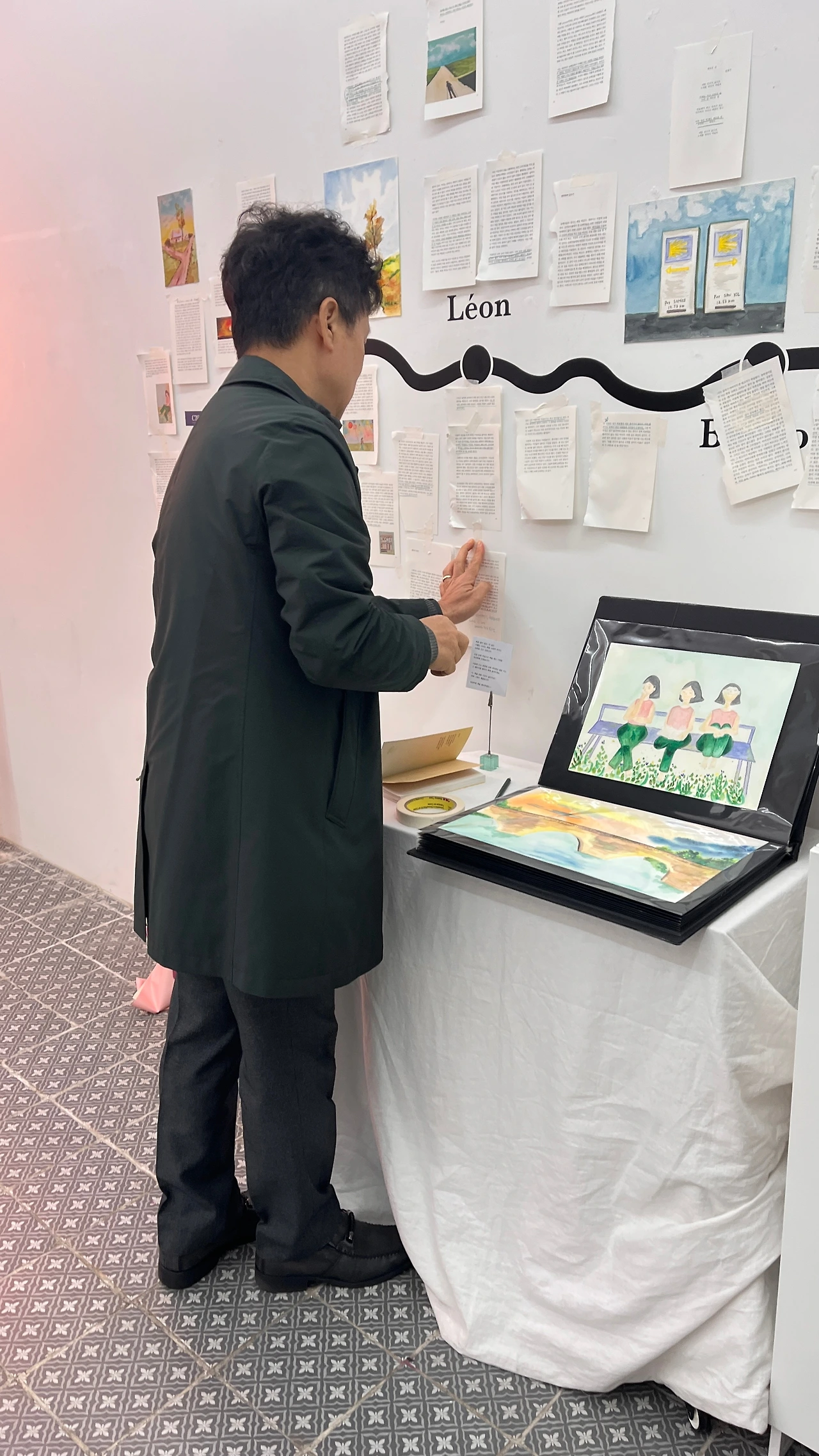 물감은 서로에게 다가가 섞이면서 다른 빛을 만든다. 색은 이웃한 색을 만나 다양해진다. 색은 감정이다. 붉은 빛을 보고 있으면 내쉬는 숨도 붉어짐을 느낀다. 물감은 그런 숨소리까지 표현한다. 물이 남긴 다채로운 흔적은 단 하나의 기억이 된다. 관람객은 마음에 드는 한 구절, 그림 한 점을 선택해 책을 찢어 벽에 붙이는 퍼포먼스를 한다. 기억은 타인의 감정 속으로 들어가게 될 것이다.