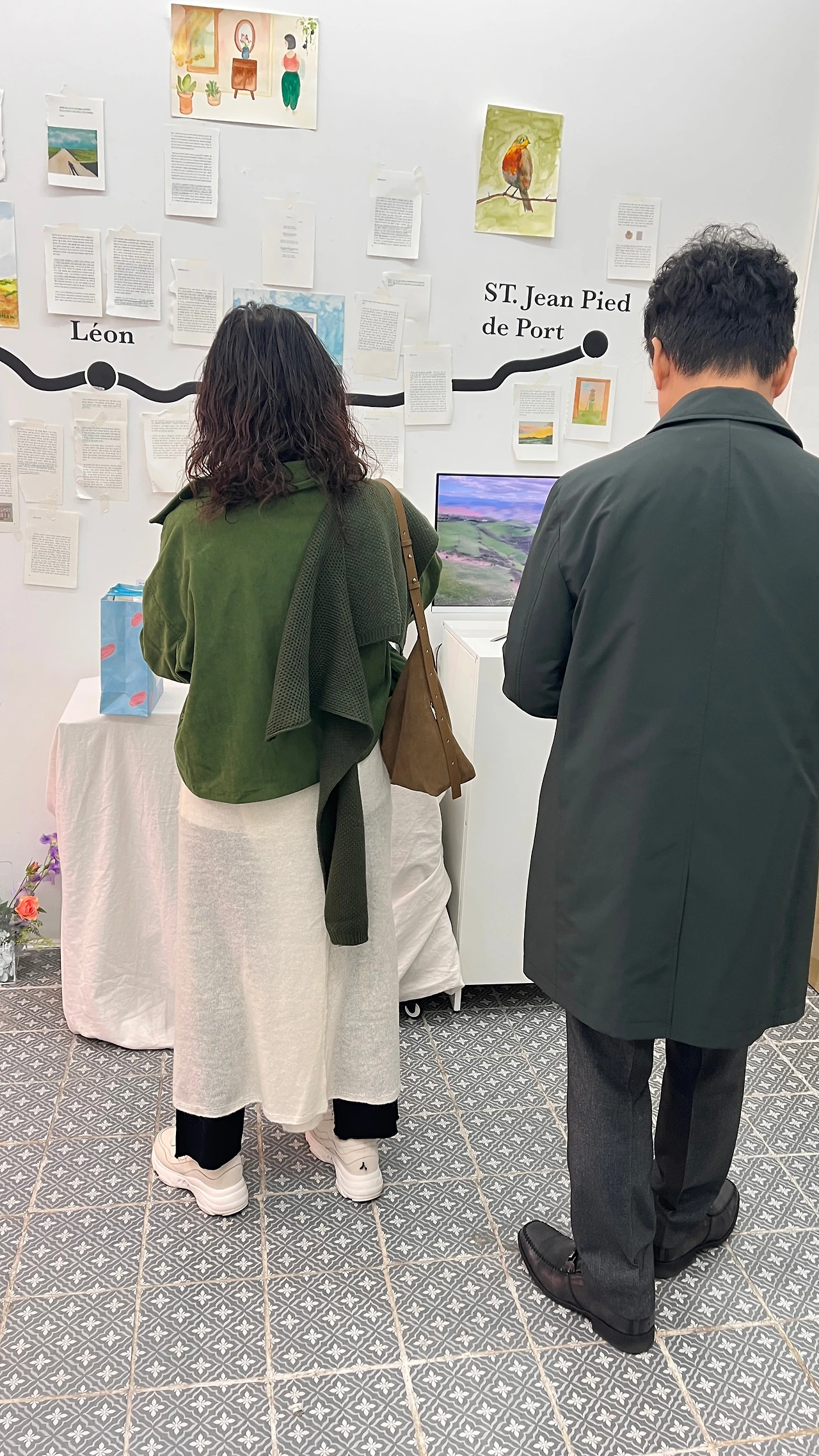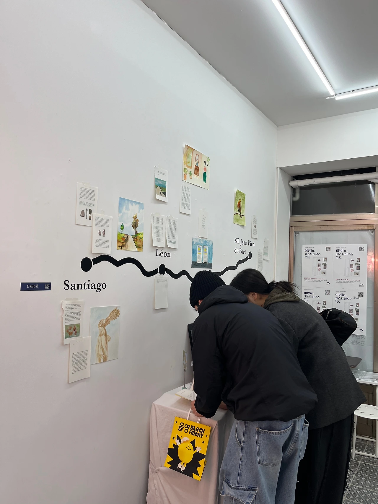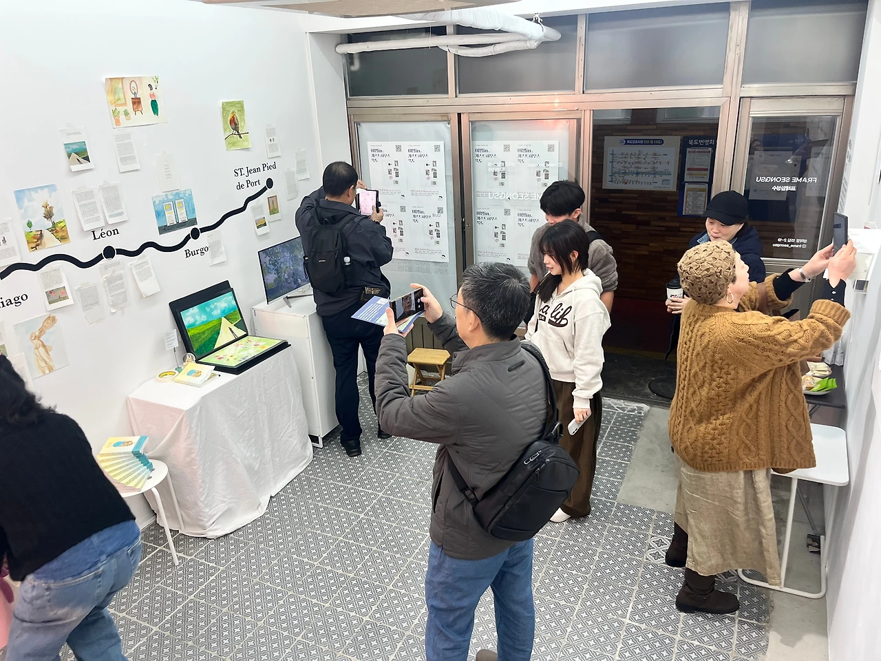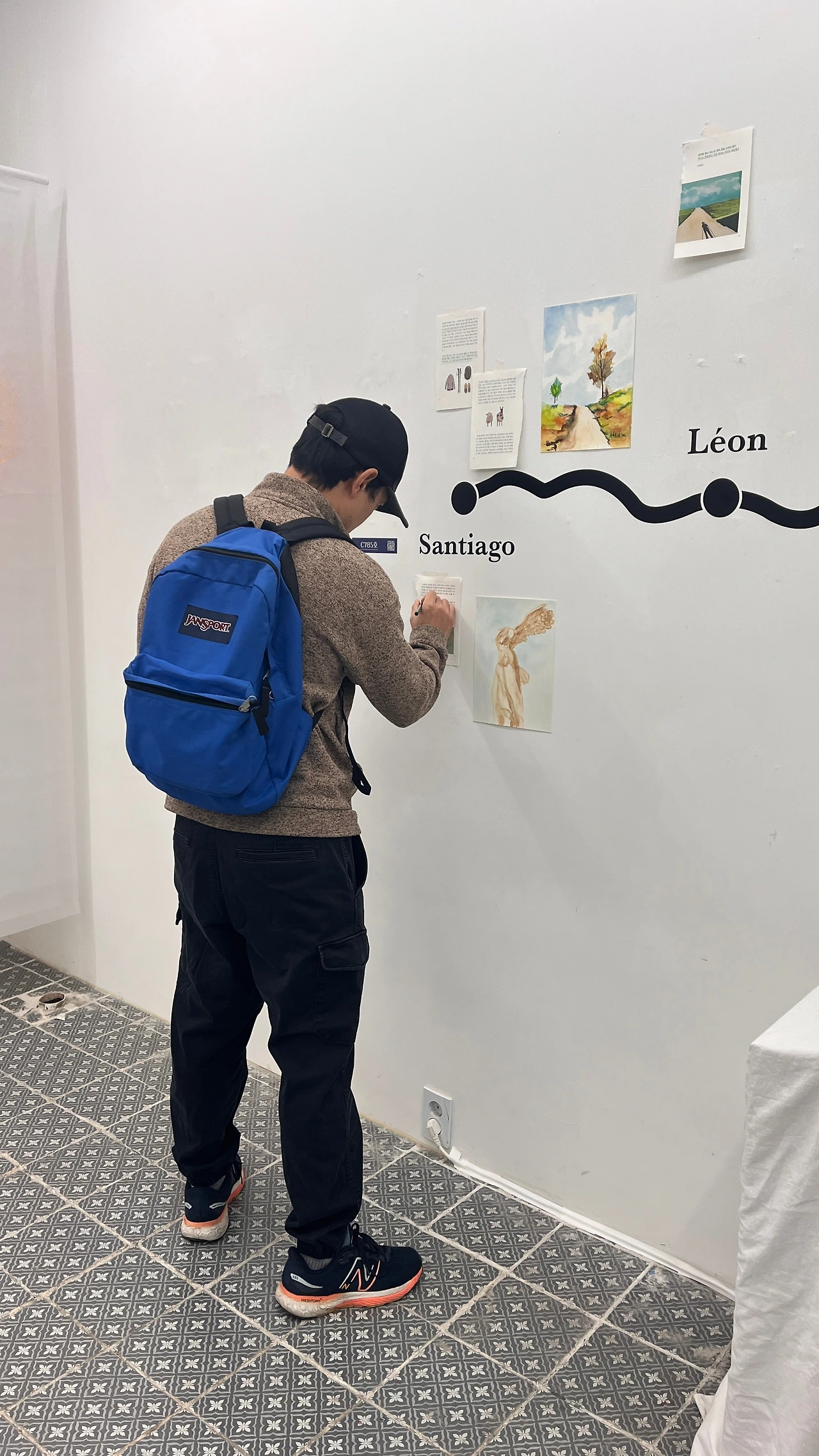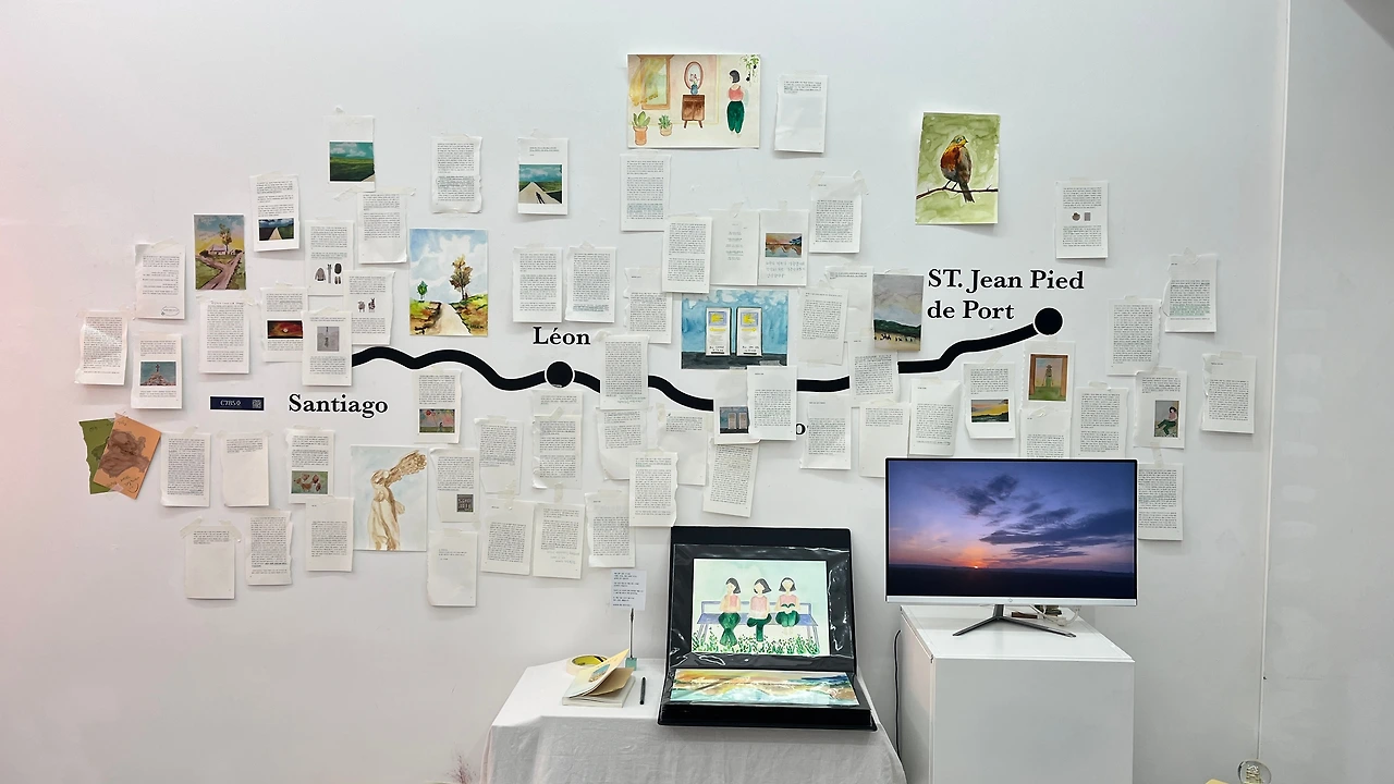 홍지현 작가는 글작가이다. 그는 그동안 자신의 책 표지를 직접 그려 출간했다. 이번에는 40점이 넘는 수채화를 그려 산티아고에서 느낀 감정을 글과 함께 표현했다. 수채화를 선택한 이유는 물이 충만하게 놀다가 남은 자국이 영원히 지워지지 않는 느낌과 닮았기 때문이다.