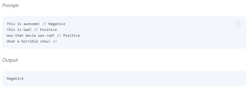 Few Shot Learning의 예시(출처 : Prompt Engineering Guide)
