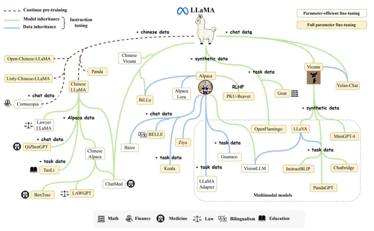 2023년 2월 LLaMA1의 등장 이후, 같은 해 7월 성능이 개선된 LLaMA2이 등장하고 완화된 라이선스 정책을 표방하면서 LLaMA는 독자적인 생태계를 구축해 왔습니다. LLaMA의 대표적인 파생 모델로는 Stanford 대학교에서 개발한 Alpaca와 UC Berkley와 UC Sandiago 등 대학교의 연구진들이 개발한 Vicuna가 있습니다.