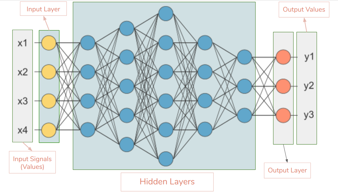 우선 딥러닝과 우리의 두뇌 모두 일종의 '신경망'입니다. 우리 두뇌는 뉴런이 시냅스(Synaps)를 통해 전기 신호를 주고받는 구조로 되어있습니다. 뉴런이란 인간의 뇌 속에서 신경전달물질을 통해 신호를 전달하고 정보를 받아들이며 처리하는 역할을 하는 물질을 말하는데, 인간은 약 600억 개에서 1000억 개의 뉴런(Neuron)을 가지고 태어난다고 합니다. 또한 이러한 뉴런에는 자극을 세포 밖으로 전도시키는 돌기인 축삭이라는 부분이 있는데, 축삭의 끝부분과 신경전달물질이 오가는 다음 뉴런 사이의 틈을 시냅스(Synaps)라고 하지요.