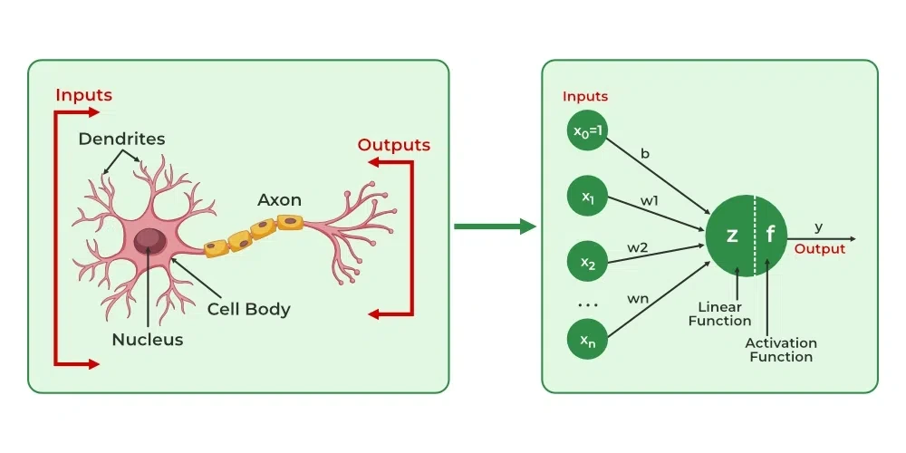 생물학적 뉴런과 인공신경망의 뉴런 (https://www.geeksforgeeks.org/)