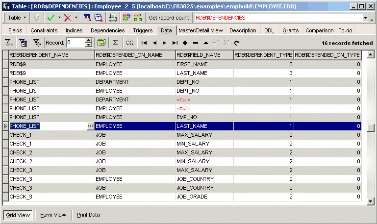 2차원 데이터로 이루어진 관계형 데이터베이스(rdb)의 예시