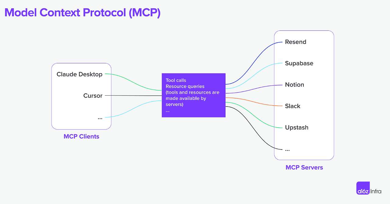 하지만 그보다 조금 앞서 다양한 LLM과 데이터 소스를 연결하는 표준 프로토콜을 만들고자 하는 시도가 있었습니다. 바로 2024년 11월 앤트로픽(Anthropic)사에서 발표한 MCP(Model Context Protocol)입니다. 이번시간에는 각각의 LLM과 다양한 데이터 소스를 이어 주기 위한 프로토콜인 MCP에 대해 살펴보도록 하겠습니다.