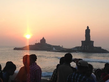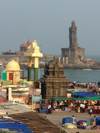마을 중심부에서 내려와 전통 시장을 끼고 바닷가 쪽으로 내려가면 바다 한가운데의 섬에 떠있는 40m 높이의 티루발루바(Thiruvalluva)의 동상이 모습을 드러낸다. "가난한 사람에게 베푸는 것만이 유일한 선물이다."라는 말을 남긴 인도의 유명한 철학자이자 시인인 티루발루바를 보티브로 만들어진 동상이다. 멀리서 보면 건물이 오래되고 낡은 것 처럼 보이지만 이래뵈도 2000년에 완공 된 동상이라고 한다.