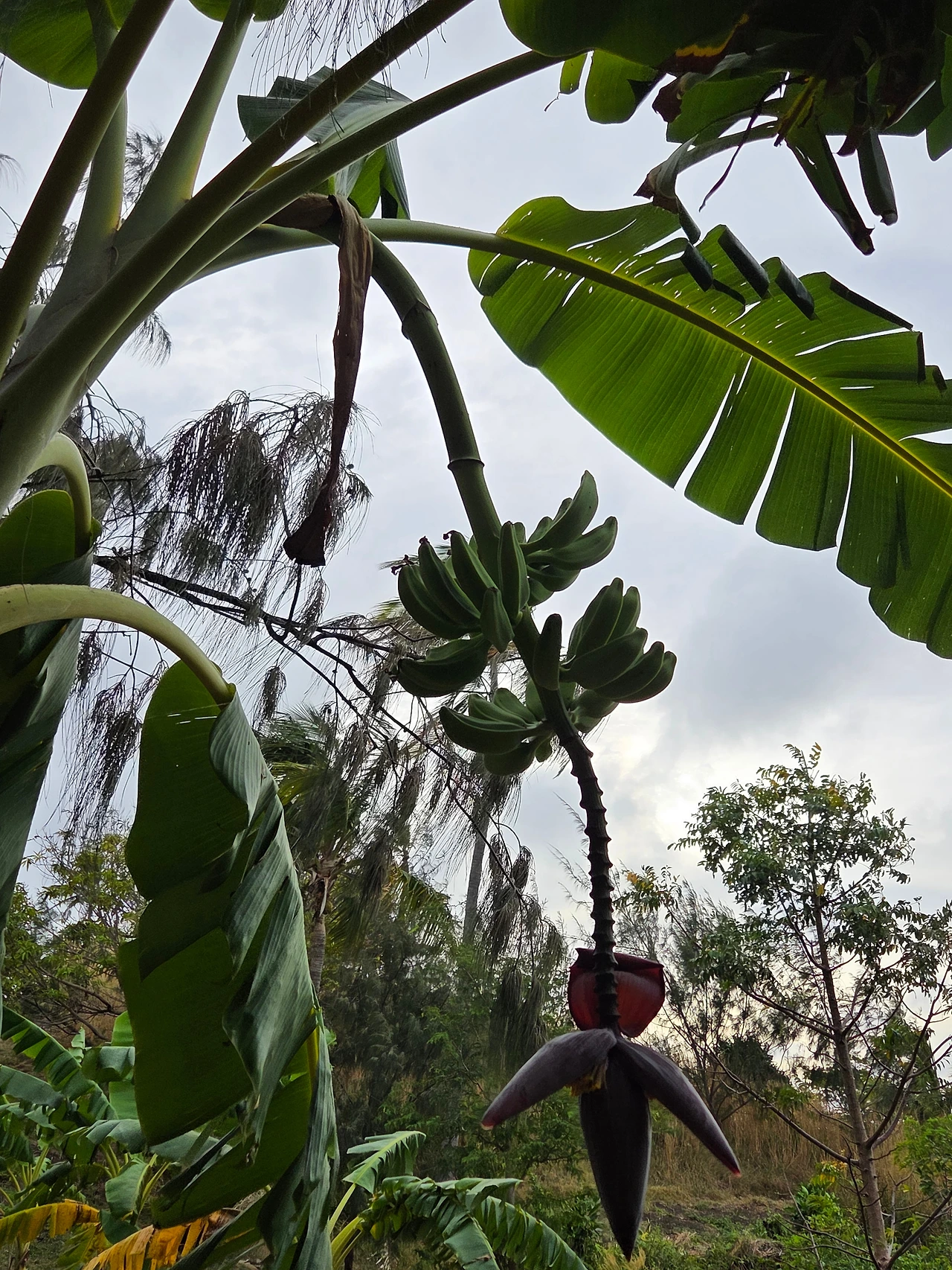 걸어서 5분 정도, 숲길을 걸어 전경이 보이는 언덕을 넘고 도착한 곳엔 카사바 줄기, 바나나 나무와 가지 열매 그리고 돼지들이 있었다.