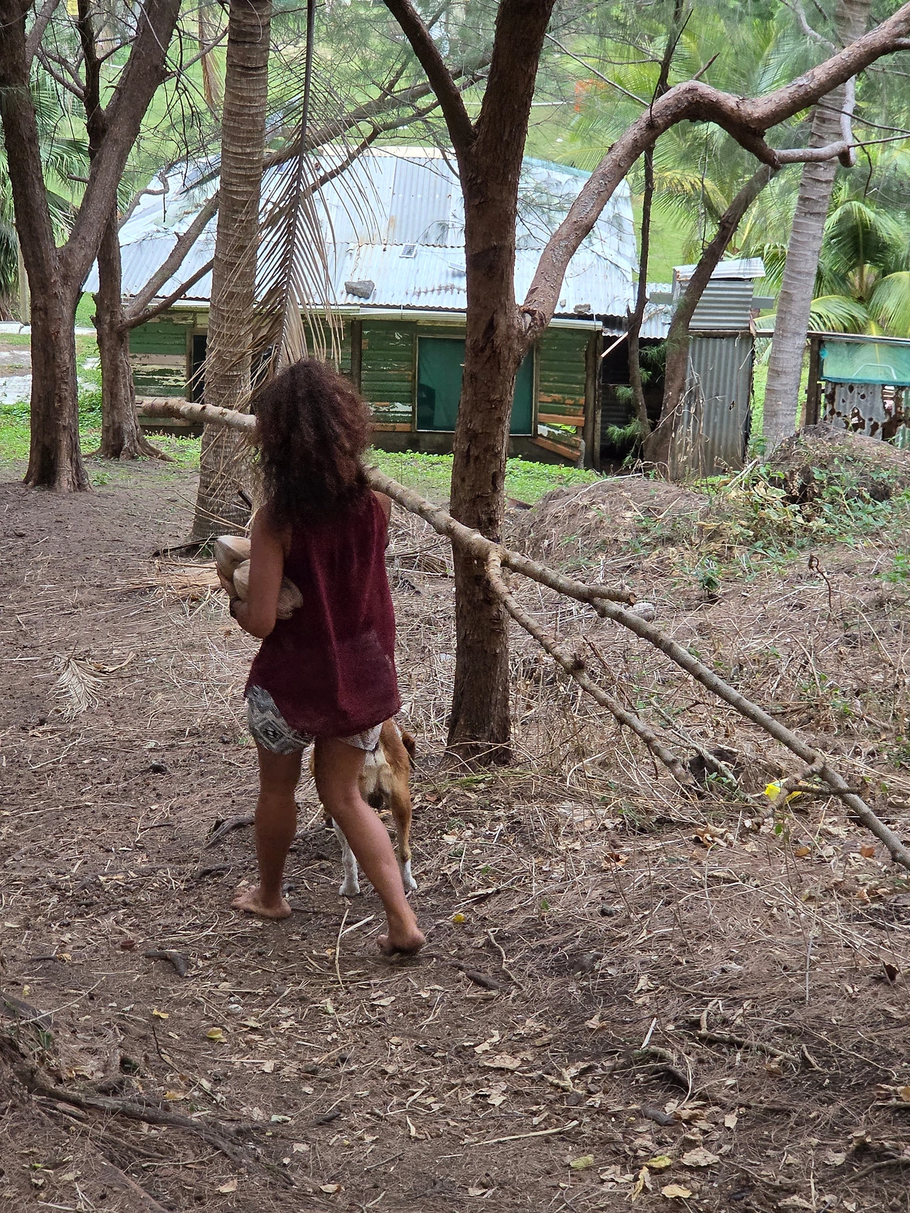 겨우 10분 정도 지났을까, 장작으로 쓸 큰 나무를 진 비나와 바둑이와 함께 다시 숙소로 돌아왔다.