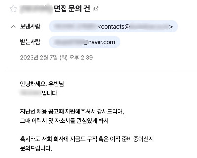 이전에는 연락이 없던 곳에서 다시 연락이 와, 면접 제의를 받았다.