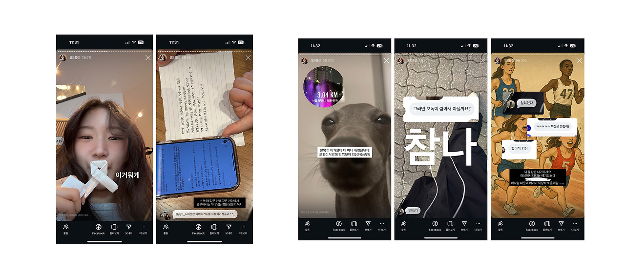 근데 실제로 나는 인스타그램 기능 중에 스토리를 제일 많이 쓰는데, 그 이유를 생각해보면 이렇다.