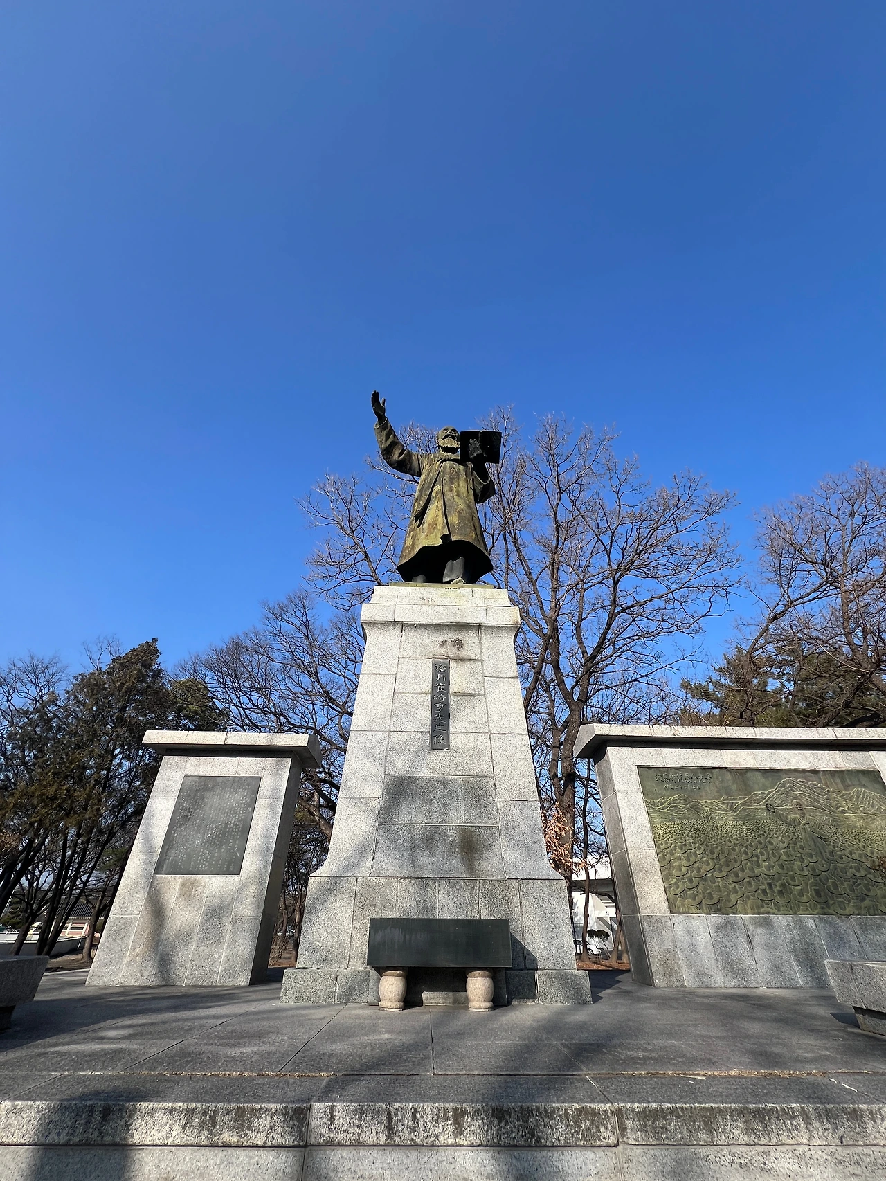 경주는 수운과 해월의 행적이 고스란히 남아 있는 곳이다. 초기 동학의 등장 전후 역사와 그 이후의 부침을 새겨보려면 경주를 와보지 않을 수 없다. 현재 경주시 현곡면에는 수운의 생가와 그가 득도한 용담정, 그리고 그 일가의 묘소가 있다. 용담정 인근에는 천도교를 중심으로 전시관과 수련시설이 조성되어 있다. 시내에서 20분 정도면 가볼 수 있는 거리이다. 해월의 생가 터는 경주 구도심에 있는데, 조만간 복원사업이 시작될 예정이라고 한다. 그의 동상은 황성공원 공설운동장 옆에 서 있다. 경주시민이라면 산책하며 늘 접하는 위치에 있다.