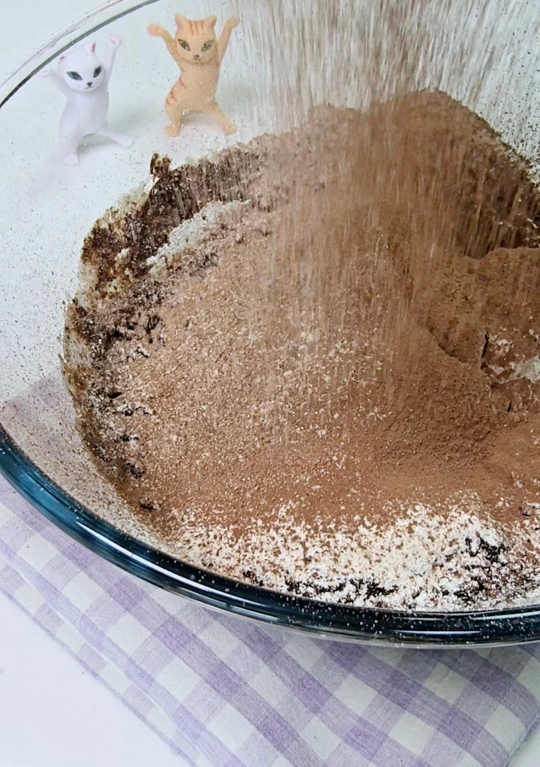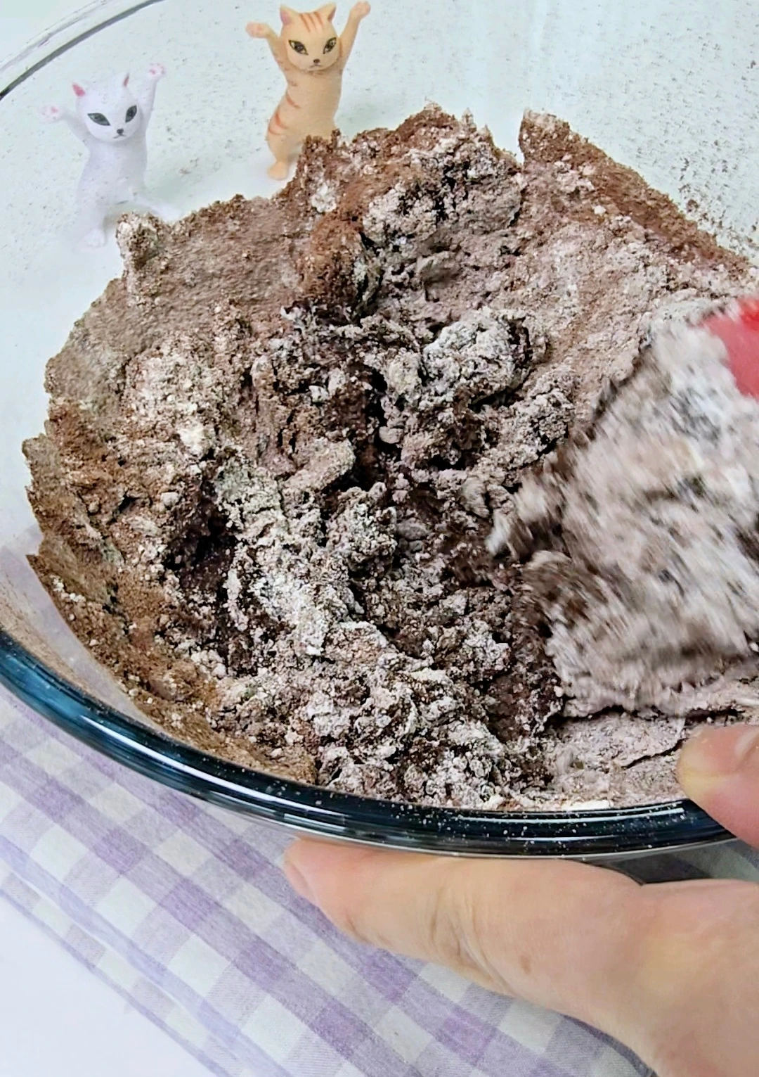 아몬드 가루, 카카오파우더, 베이킹파우더를 넣은 후 잘 섞어줍니다.