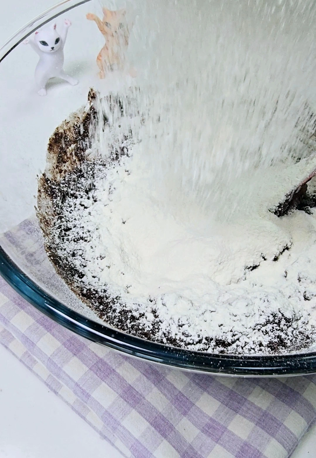 가루재료를 채에 쳐서 차례대로 내려주세요.