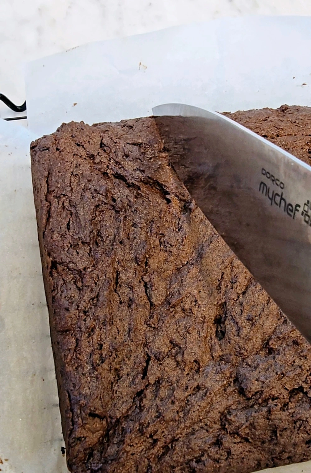 칼로 자르니 속은 갓 구은 머드 케이크처럼 부드러움이 살아 있다.
