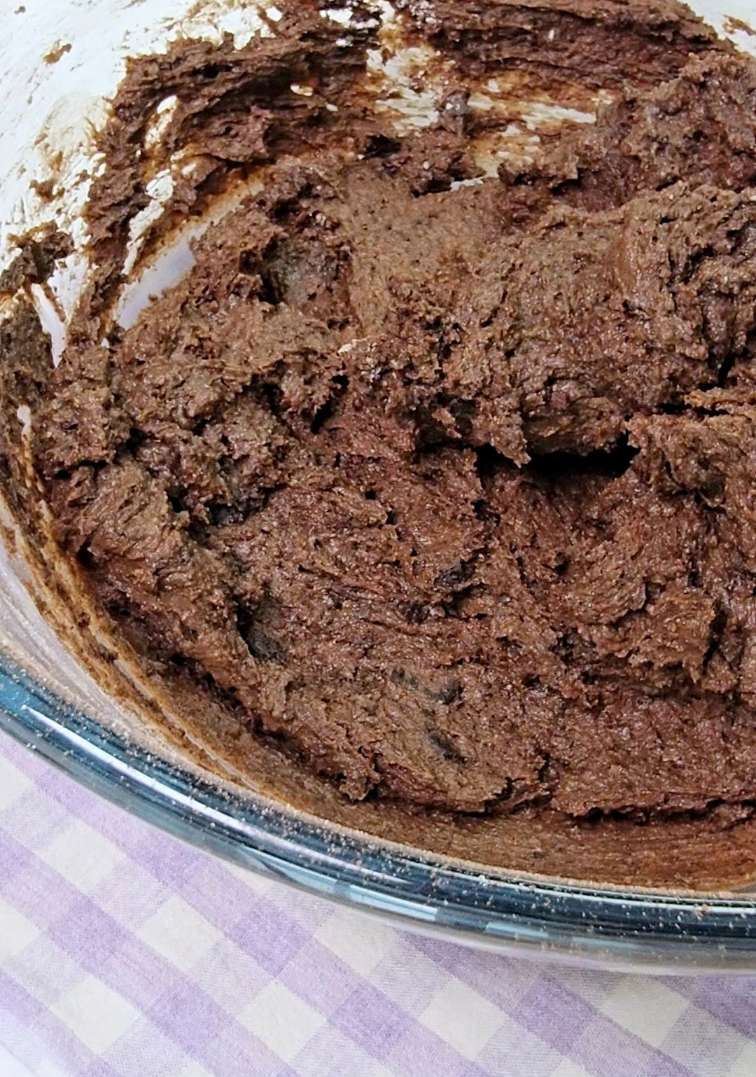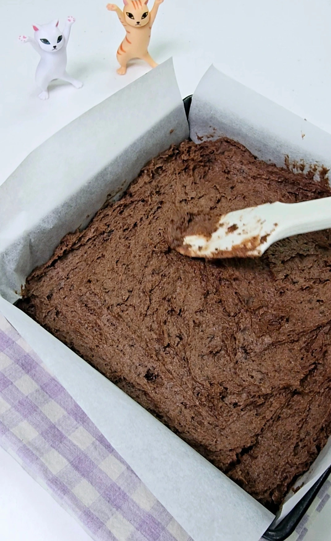 잘 섞어진 재료를 브라우니 틀에 담습니다.
