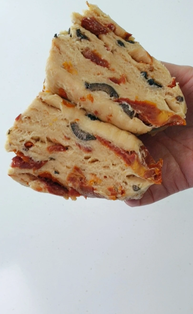 스콘의 결 사이로 소박하게 얼굴을 내민 썬드라이 토마토 조각과 검붉은 올리브 조각이 강렬한 첫인상을 안겨준다.