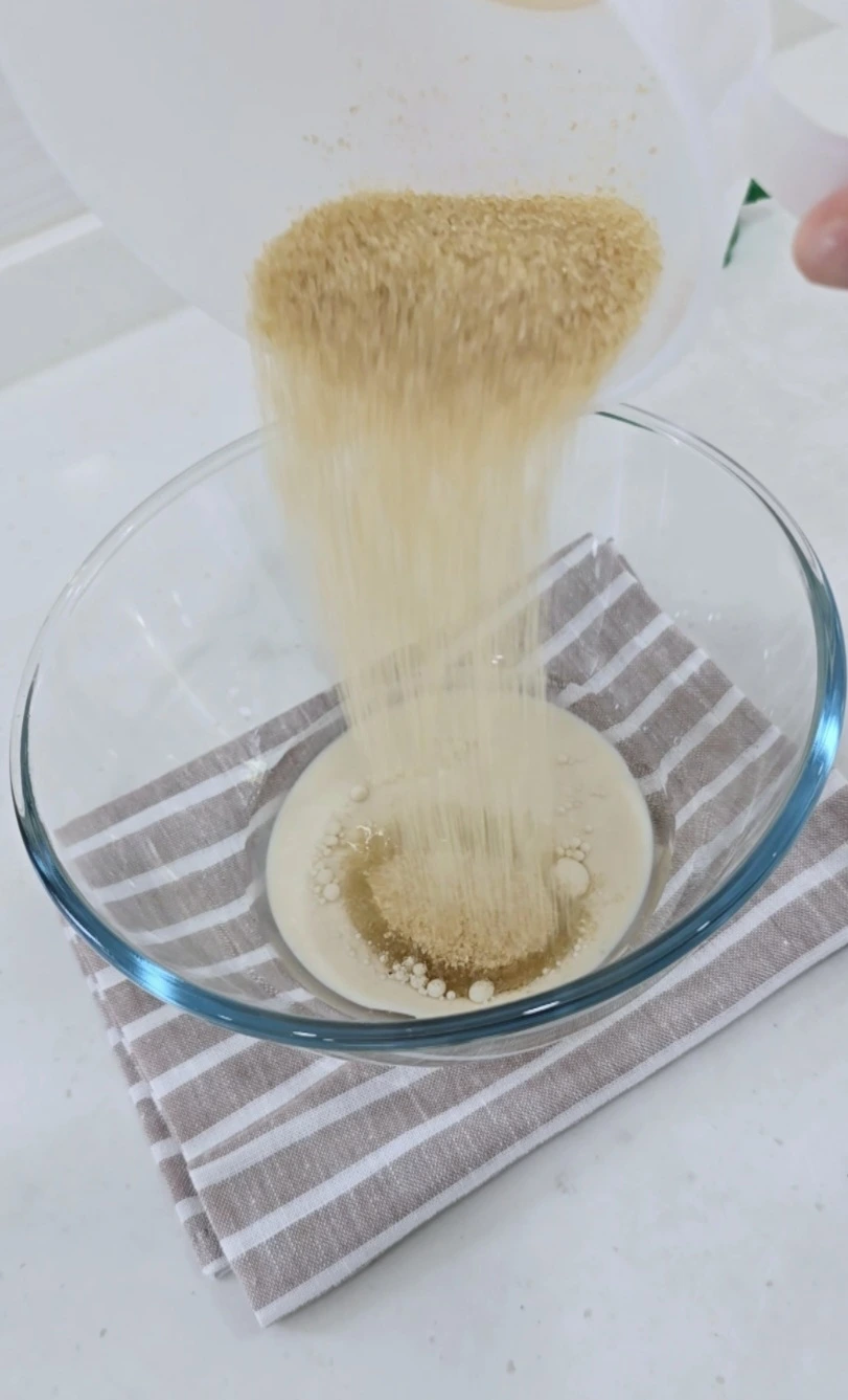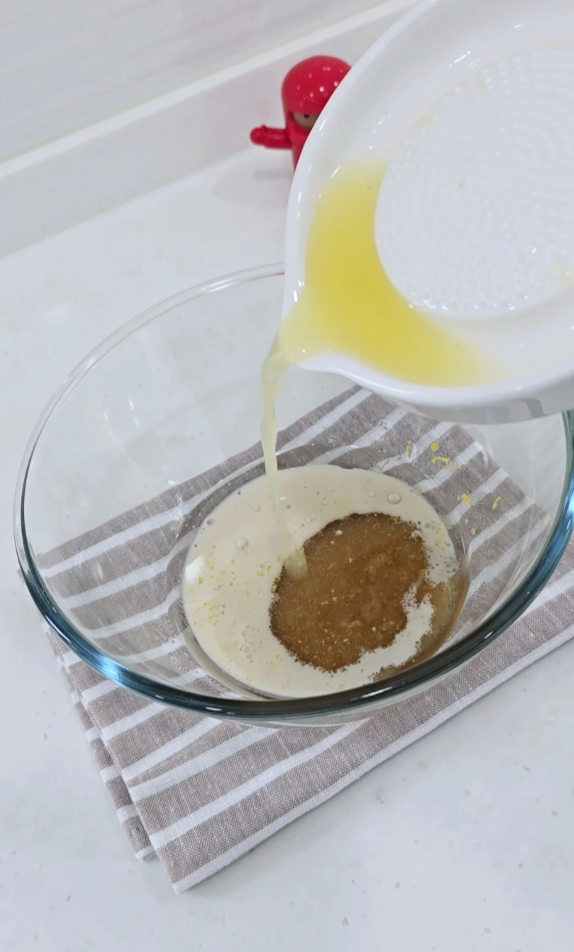 볼에 원당, 두유, 코코넛오일을 넣습니다.