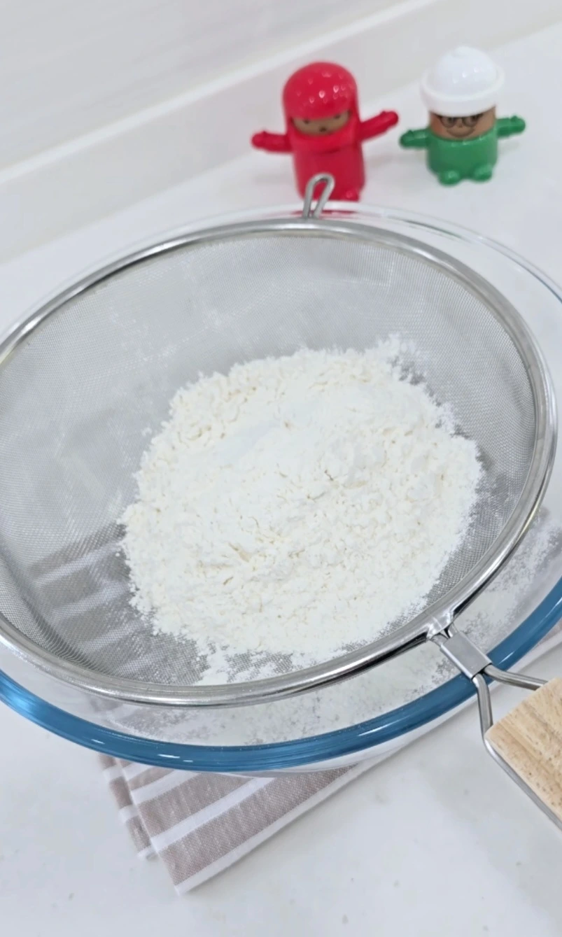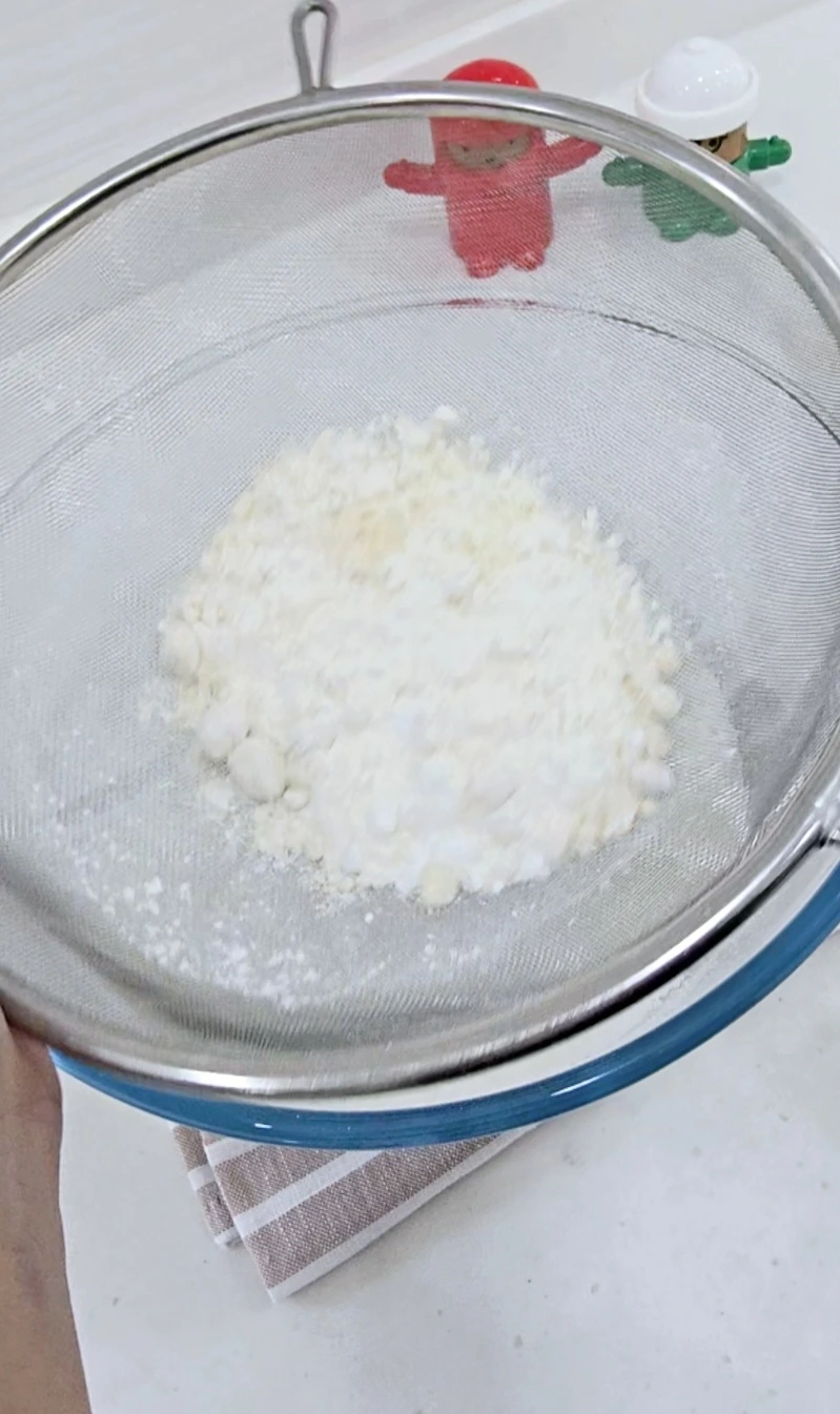 박력분, 전분, 아몬드가루를 체에 내려 섞어둡니다.