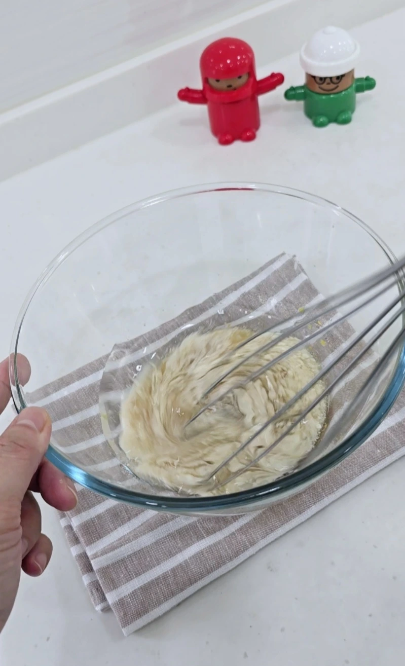 거품기로 가볍게 한 번 섞어줍니다.