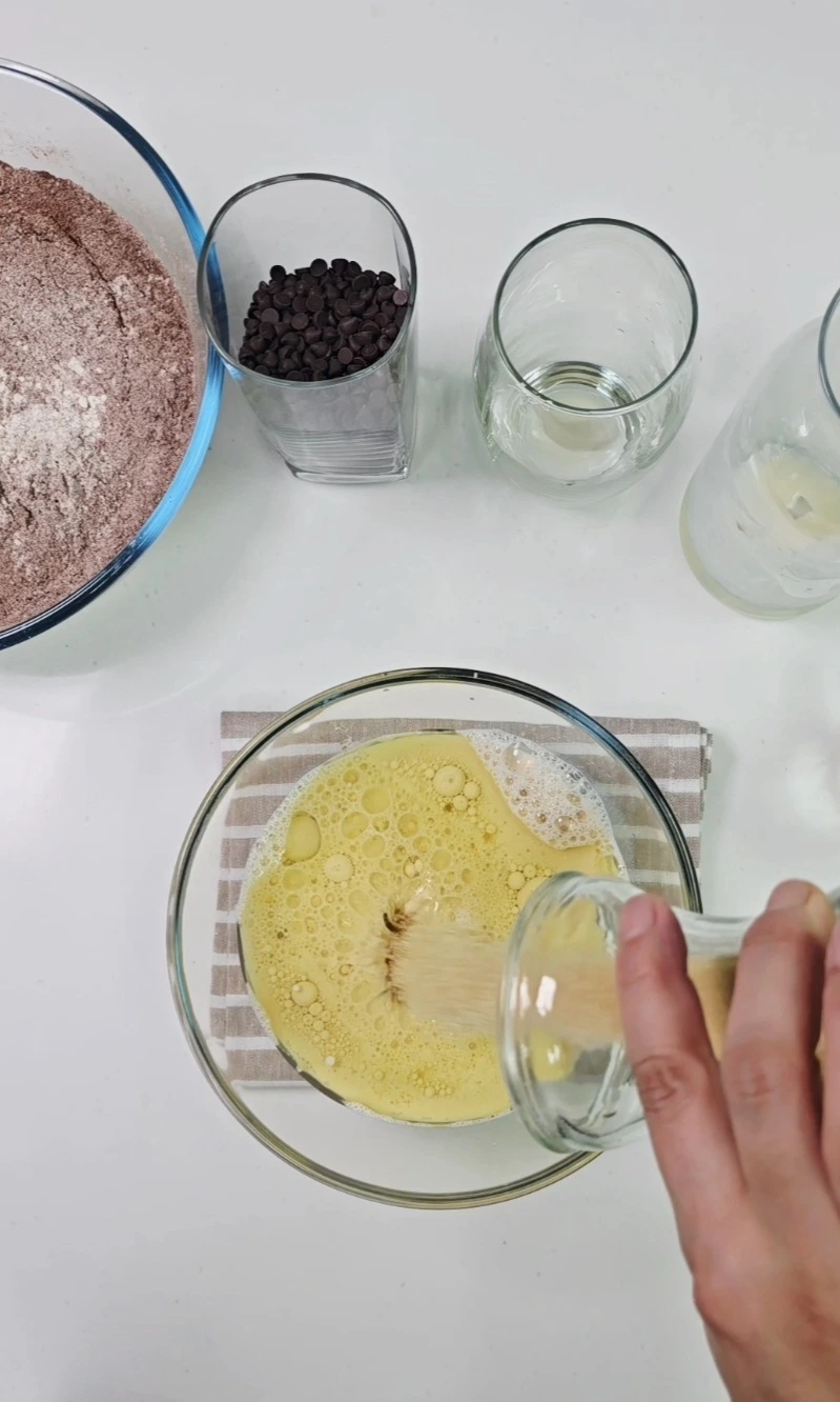 아가베시럽과 비정제원당을 넣고 거품기로 잘 섞어준다.