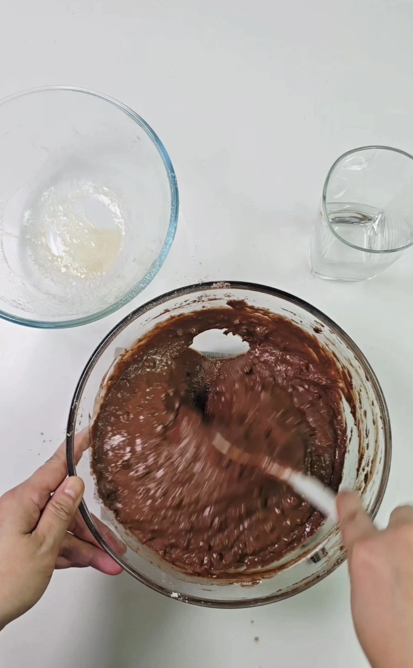 가루재료에 액상 재료를 넣고 주걱으로 잘 섞어줍니다.