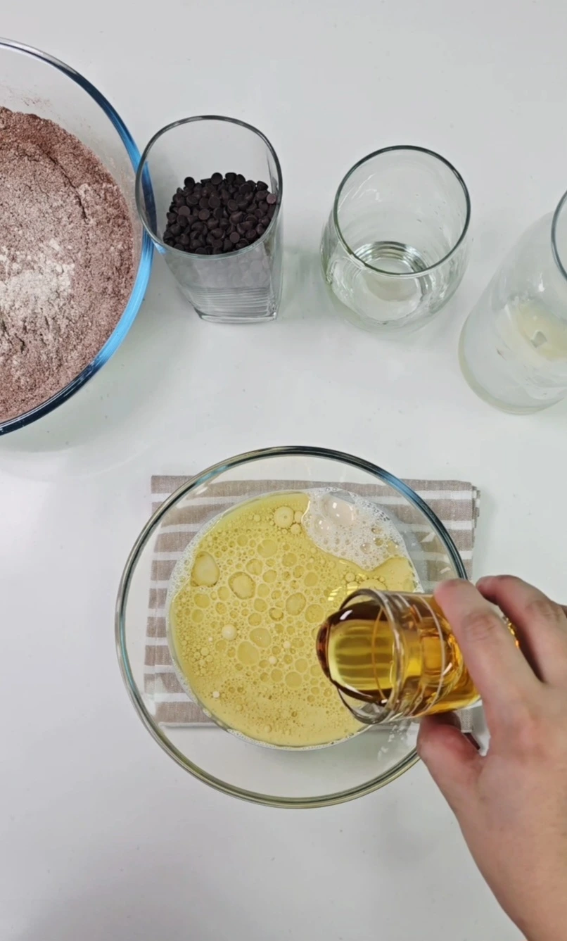 섞은 재료에 초코칩을 넣고 다시 잘 섞어줍니다.