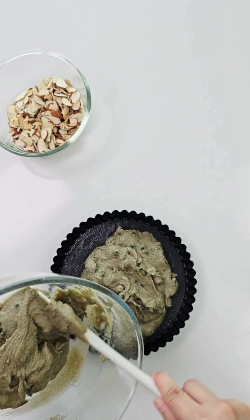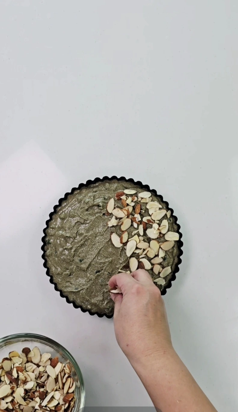 반죽 위에 아몬드슬라이스를 골고루 뿌려줍니다.