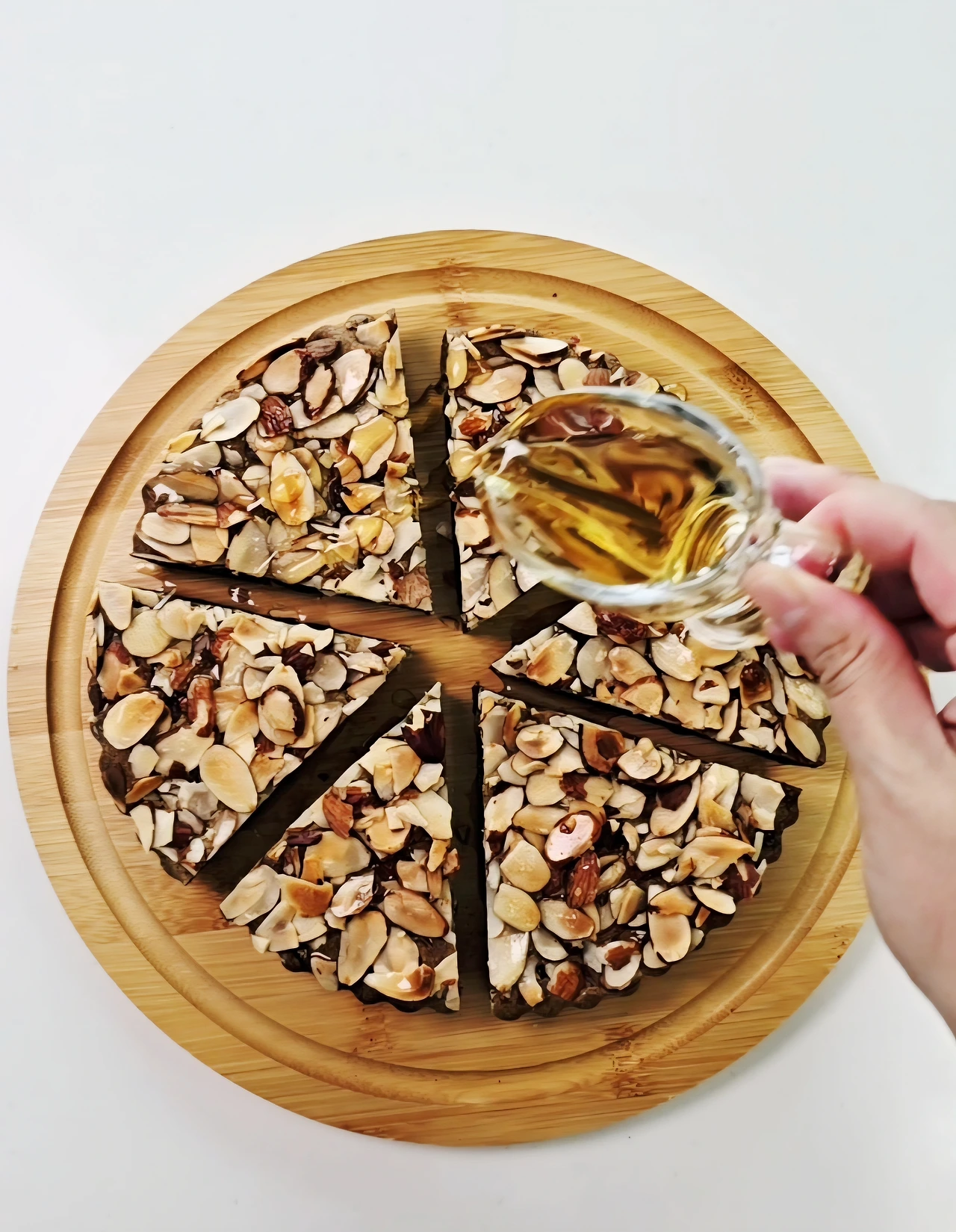 파이 위를 황금빛으로 물들인 아몬드.