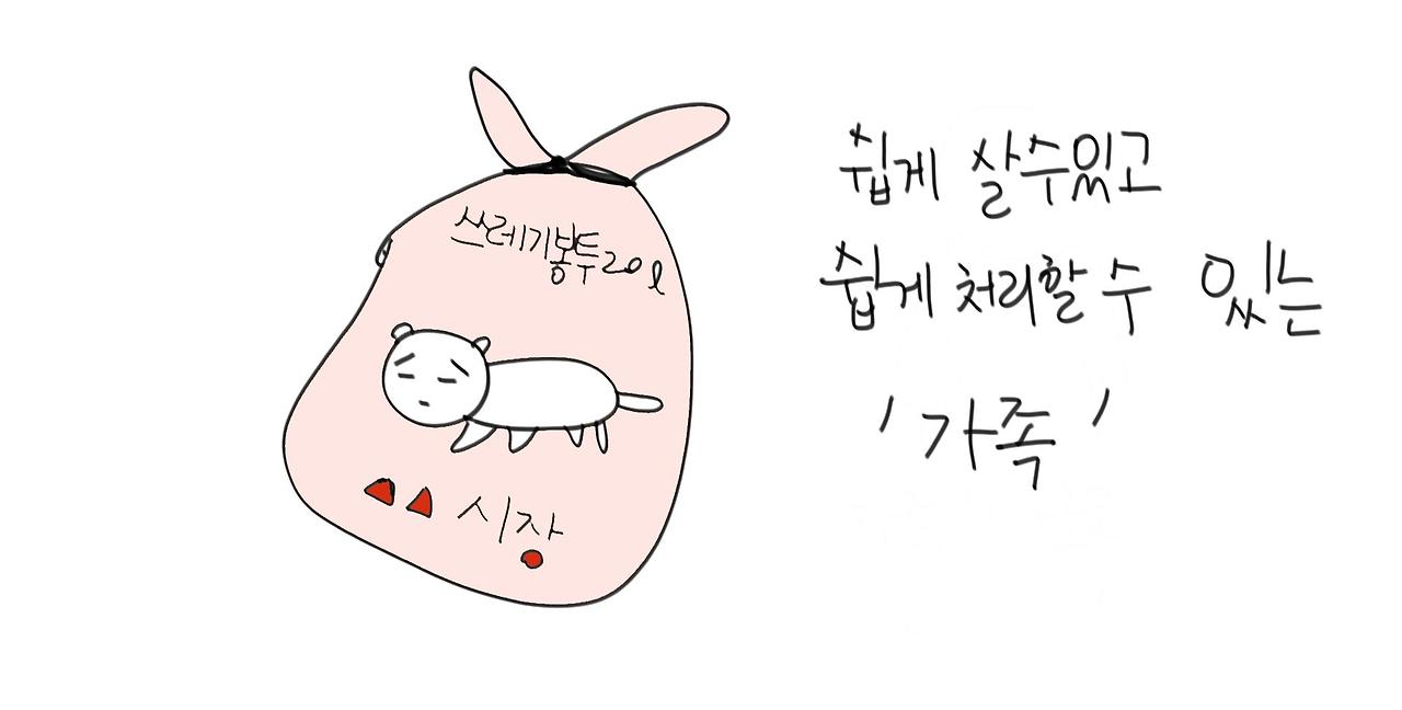 "아휴. 그럼 어쩔 수 없이 쓰레기봉투에 담아서 처리해야겠네요. 그쵸?"