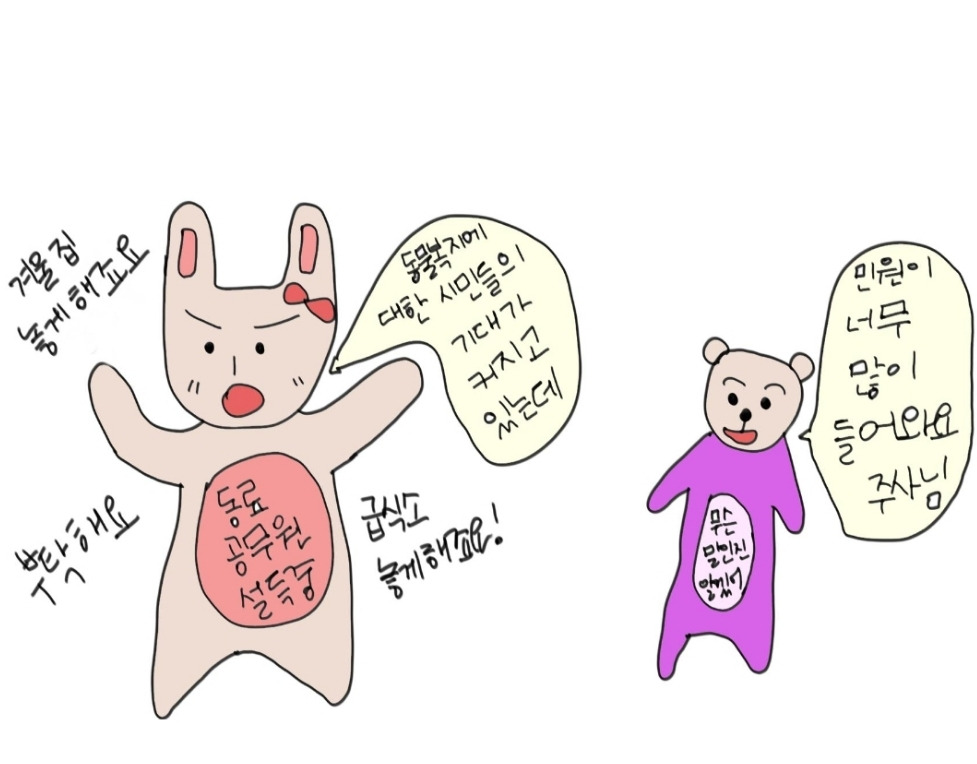 추위에 떠는 생명에게 따뜻한 자리를 허락하는 것, 배를 곯는 아이들에게 먹을 것을 주는 것. 다치고 아픈 생명을 돌보는 것은 '옳고 그름'의 논리를 떠나 ‘인간성’과 관련한 부분이며, 공적인 일을 수행하는 기관에서 그를 위한 일들을 차근차근 시행하는 것으로 더 많은 가치를 지켜낼 수 있을 것이라고 믿기 때문이다.