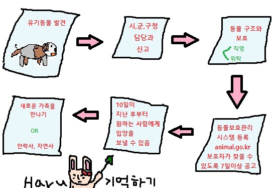 보호관리를 맡은 곳에서는 구조된 유기동물의마이크로칩 등으로 소유자를 확인하는 과정을 거쳐 동물보호관리시스템(animal.go.kr)에 정보를 올린다. 그 후 7일 이상 유기동물의 정보를 공개하여 보호자의 연락을 기다린 뒤에 10일이 지나도록 주인이 나타나지 않으면 해당 동물의 소유권은 지자체가 갖게 된다. 반드시 이 과정을 거쳐야 새로운 가족에게 입양 보낼 수 있다.