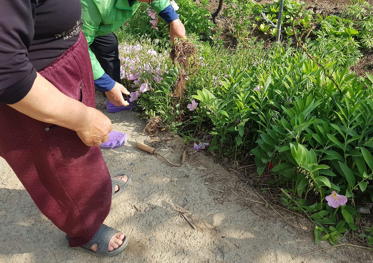 친화적인 시골 분위기에 어느 정도 적응을 한 터라 그 행동이 낯설진 않았다. 내가 놀란 것은 이어진 이웃의 모습이었다. 처음 보는 그 아주머니는 "그럼 좀 주지 뭐"라고 말하며 호미부터 집었다. 이모는 또 그 호미를 받아 들고 능청스럽게 "조금만 캐 갈게유"라며 꽃나무를 함께 거둬들이기 시작했다. 시골 인심이 좋다고는 하지만 이 정도일 줄이야!