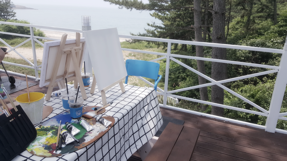 빈 의자를 보며 생각이 깊어져 그림으로 옮겼습니다.