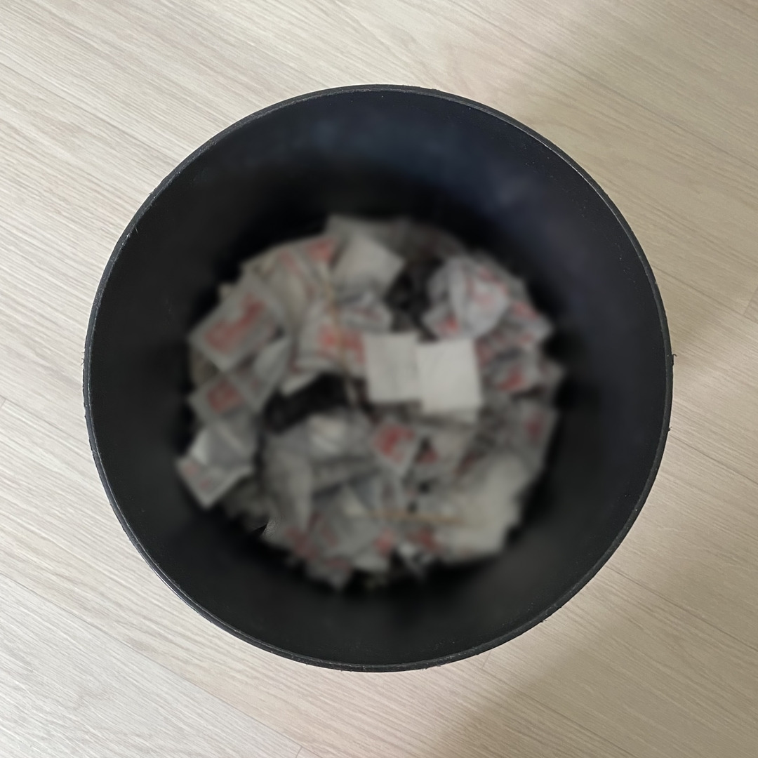 처음엔 한 달 정도 가볍게 계획하고 시작한 실험이었다. 이렇게 긴 시간 쓰레기를 방치할 수 있었던 건 우선 쓰레기의 양이 현저히 적었기 때문이다. 그동안 쌓인 쓰레기는 알코올 솜, 면봉, 머리카락, 생활 먼지가 대부분이었다. 무엇보다 냄새가 나거나 음식물이 묻은 것이 일절 없었기에 생활에 불편함이 없었다. 실제로 쓰레기통을 비우고 냄새를 맡아 봐도 아무 냄새가 나지 않았다. 처음에는 쓰레기통을 비우지 않는 것에 대한 찝찝함이 있었지만, 시간이 지나면서 번거로운 일을 하지 않아도 된다는 점이 오히려 편했다. 그보다는 쓰레기가 많이 줄었다는 사실에 더 큰 뿌듯함을 느꼈다. 육안으로 확인한 놀라운 변화가 주는 쾌감이 있었다.