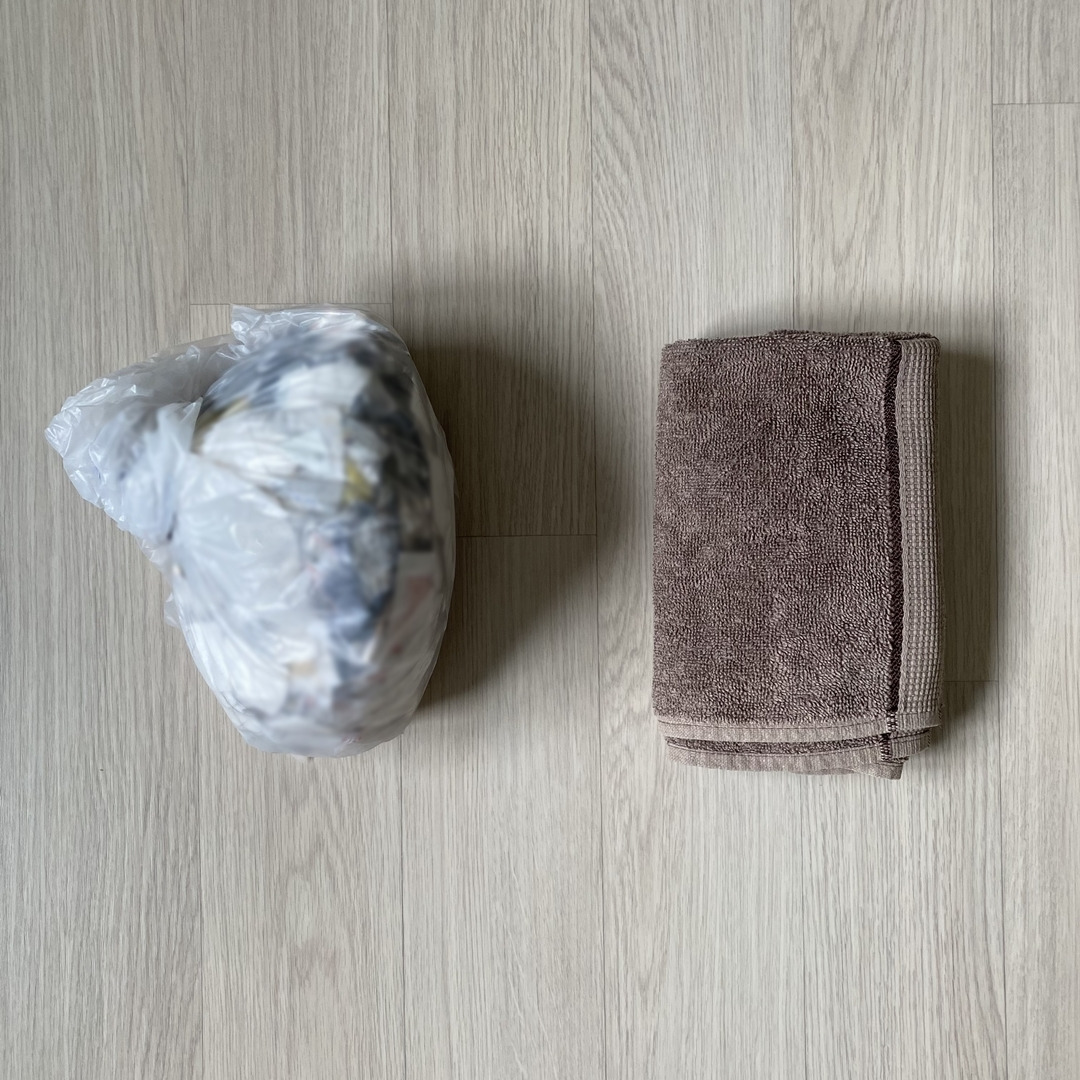 그리고 6개월이 흘렀다. 지금까지 내가 모은 쓰레기의 양은 이 쓰레기통의 절반이라고 생각했다. 쓰레기통을 드디어 비우기로 한 날 쓰레기에 손을 올려 꾹 누르자 예상보다 훨씬 적은 양이었다. 절반이 아닌 4분의 1. 종량제 봉투에 넣고 보니 한 손을 쫙 펼쳤을 때의 크기와 비슷했고 일반적으로 사용하는 욕실 수건을 접어 놓은 크기와 흡사했다. 마지막으로 사용했던 청소포 몇 장이 들어 있었는데 이를 포함해서 6개월 치 쓰레기가 이 정도라는 것을 감안했을 때, 내 방에서 배출되는 1년 치 쓰레기는 대략 5L 종량제 봉투에 못 미치는 양이 될 것으로 예상된다.
