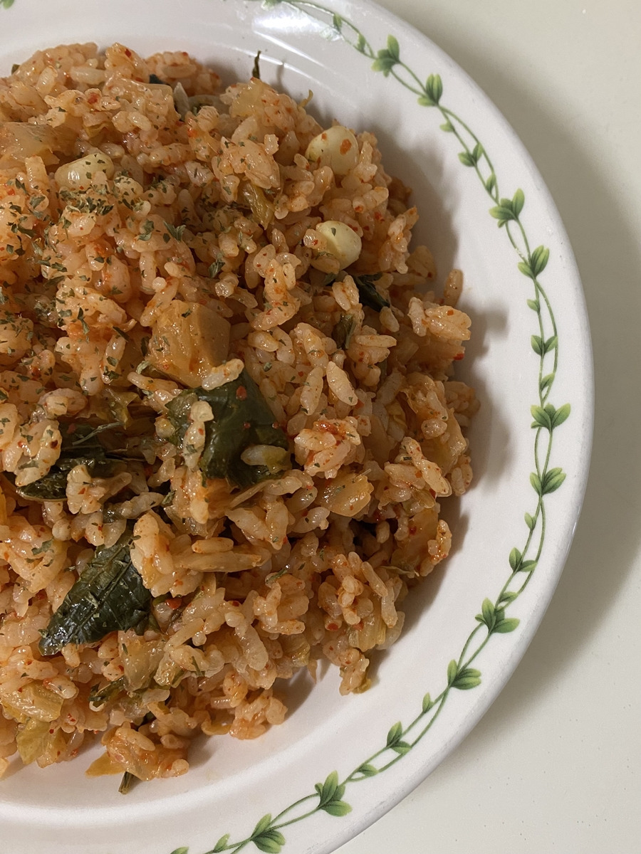 김치밥을 먹고 있는 나를 보더니 엄마는 "김치볶음밥 했어?"라고 물어보셨다. 정말 김치볶음밥처럼 보인다. 내 입맛에만 맞는 줄 알았는데 엄마도 맛있게 드셨다는 후문. 맛이 없으면 참기름도 두르고 참깨도 뿌려 드시라고 말했는데 그냥 먹어도 맛있다며 한 접시를 다 비우셨다. 나름 검증 완료된 요리.