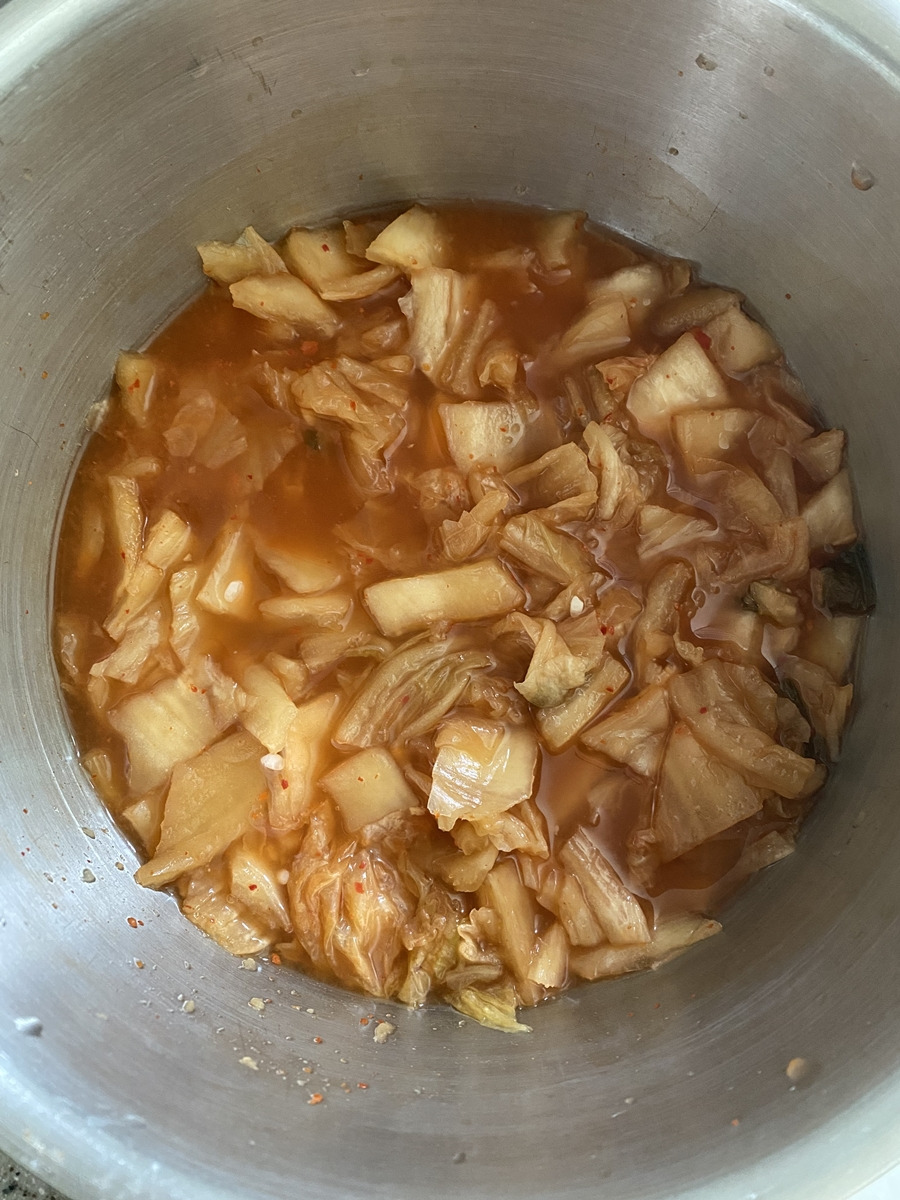 ※ 김치볶음밥을 할 때처럼 김치 국물을 많이 안 넣어도 김치에서 짠맛이 빠져나오기 때문에 전체적으로 간이 적절하게 맞는다.
