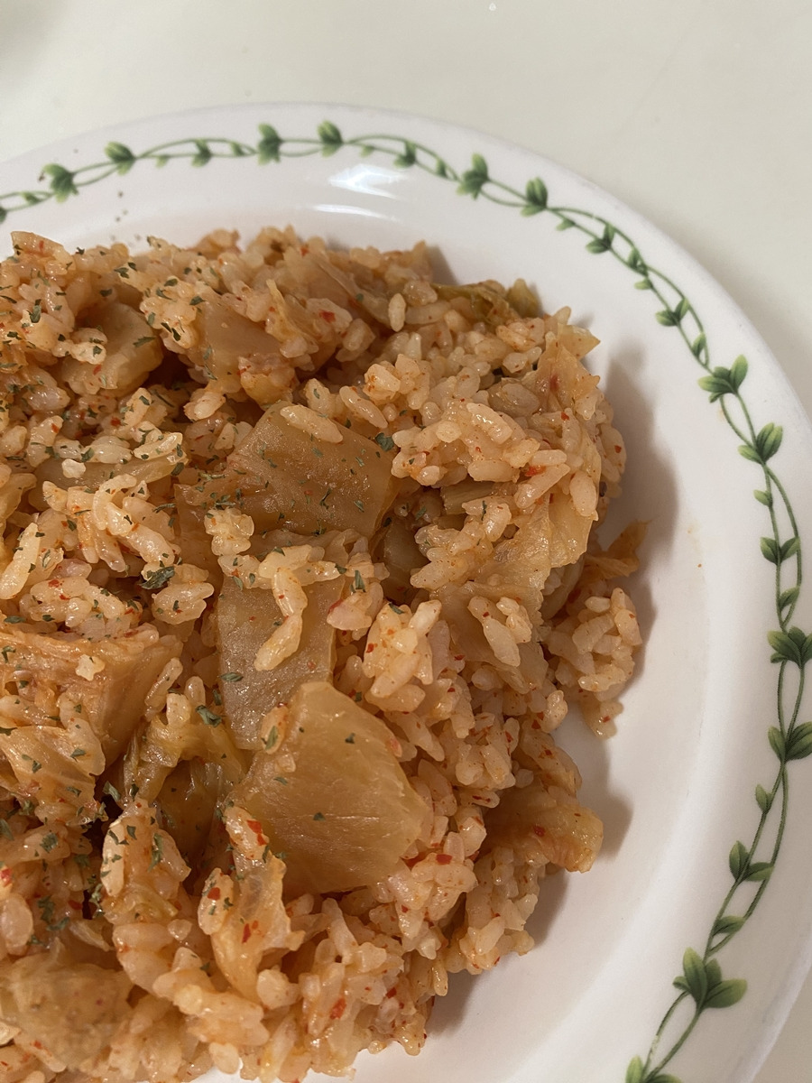 관건은 물 조절이다. 물이 많이 들어가면 밥이 질어지니까 주의할 것. 양파 등 넣는 채소나 김치 국물의 양에 따라 물을 조절하자.
