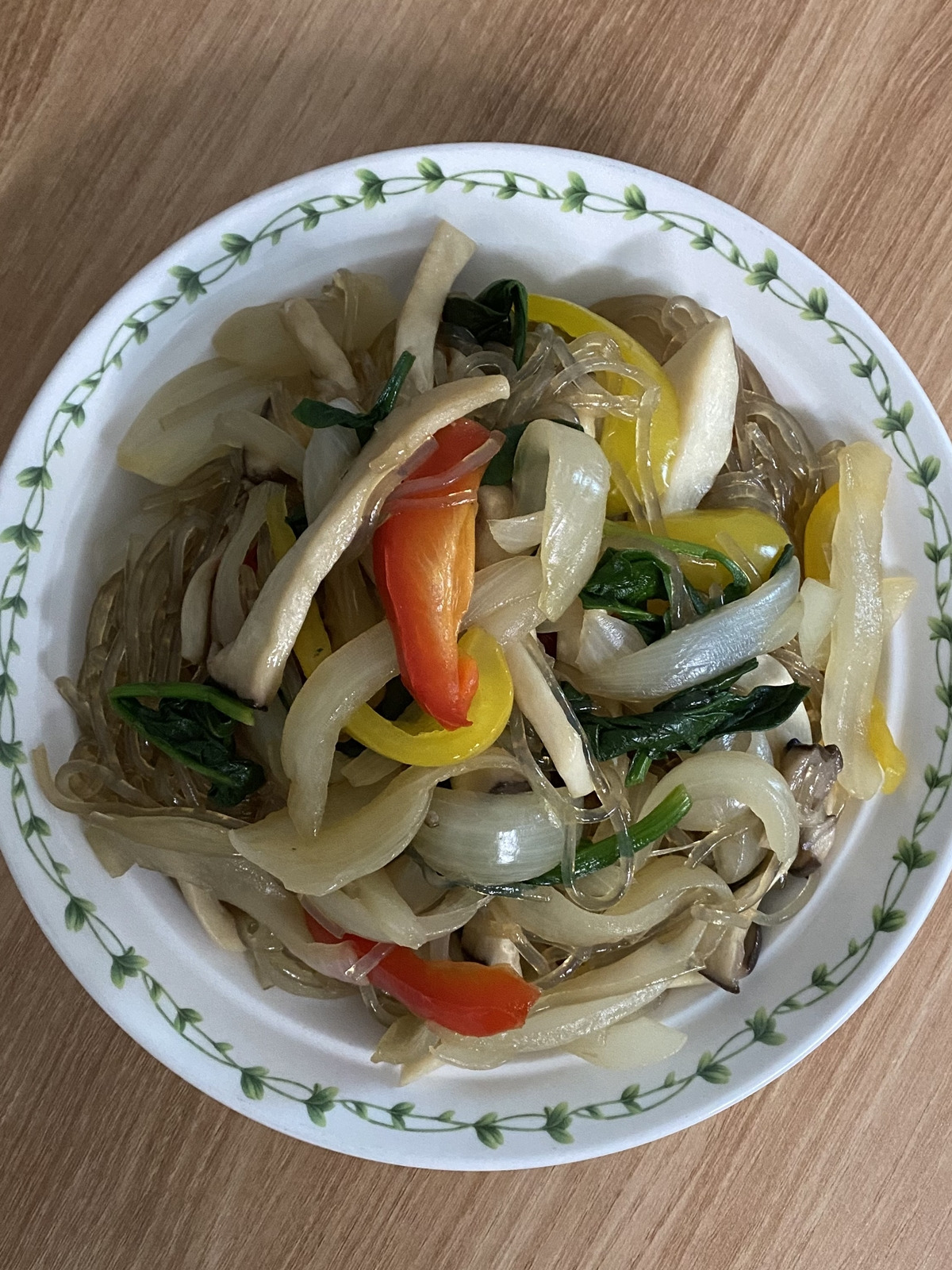 [재료] 당면, 간장, 물, 채소, (버섯)