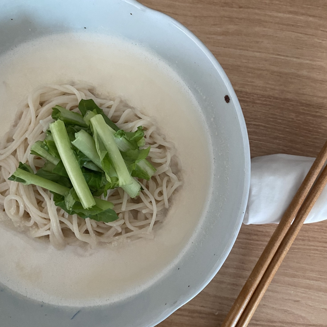 4. 면을 그릇에 옮겨 담고 콩물을 부어 준다.