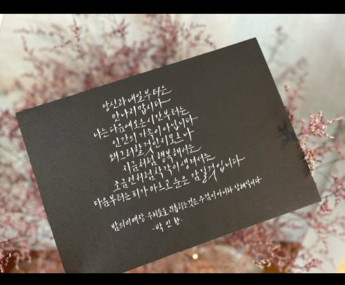 캘리그래피를 취미로 하고 있습니다. 취미가 일상의 힐링이 될 수 있다고 생각하고 있으며 보고 듣고 느낀 감상을 캘리그래피로 남기고 있습니다