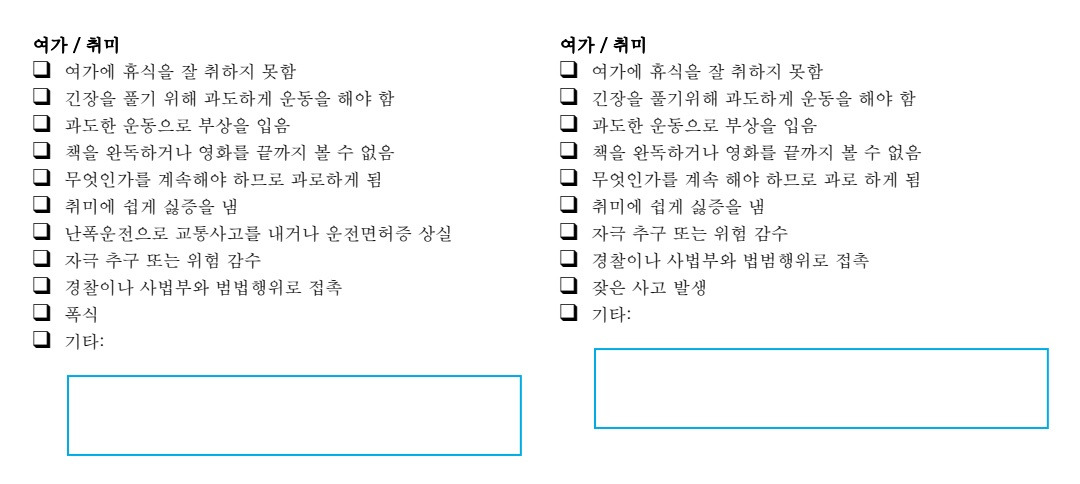 출력해서 자가진단을 해 봐도 좋을 듯합니다.
