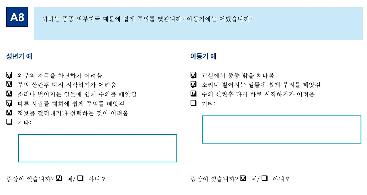 - 세계보건기구(WHO)가 주축이 돼 개발한 성인 ADHD 진단 도구로