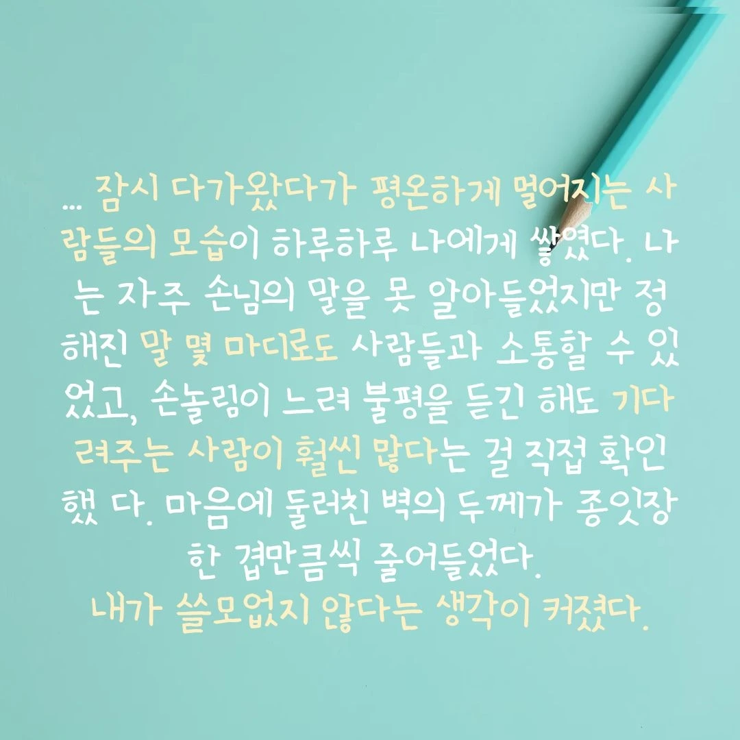 제가 이 책 전체에서 가장 좋아하는 한 문장을 고른다면 이 꼭지의 문장입니다.