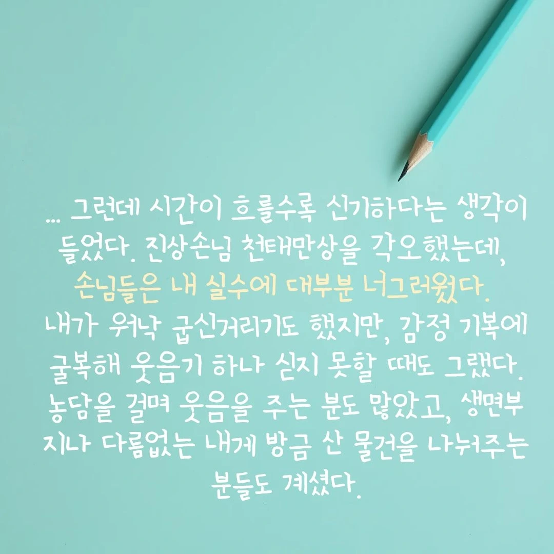발췌할 부분이 많아서 사장님 부부에 대한 이야기는 카드에 자세히 넣지 못했는데, 저는 다른 복은 몰라도 '편의점 점장 복'이 좀 있기도 해요.