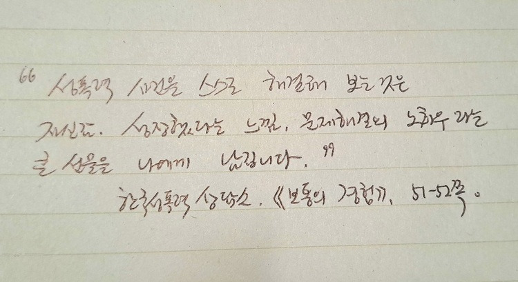 ▲ 가해자와 합의 후 복잡한 감정을 추스르고 내가 해온 분투의 가치를 들여다보도록 도와준 한 문장. [사진 출처=민바람]