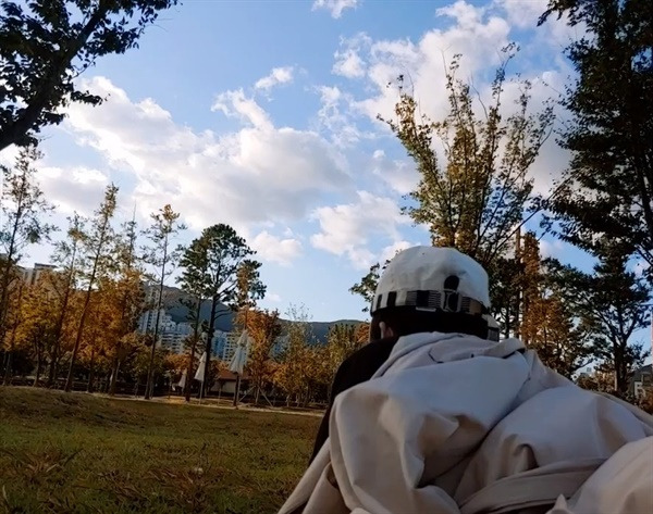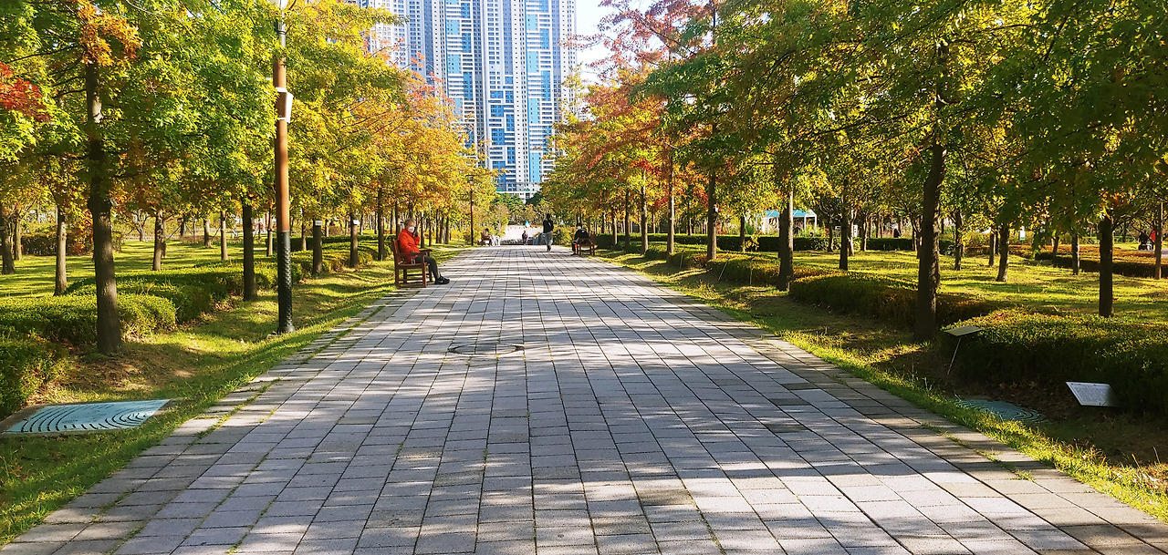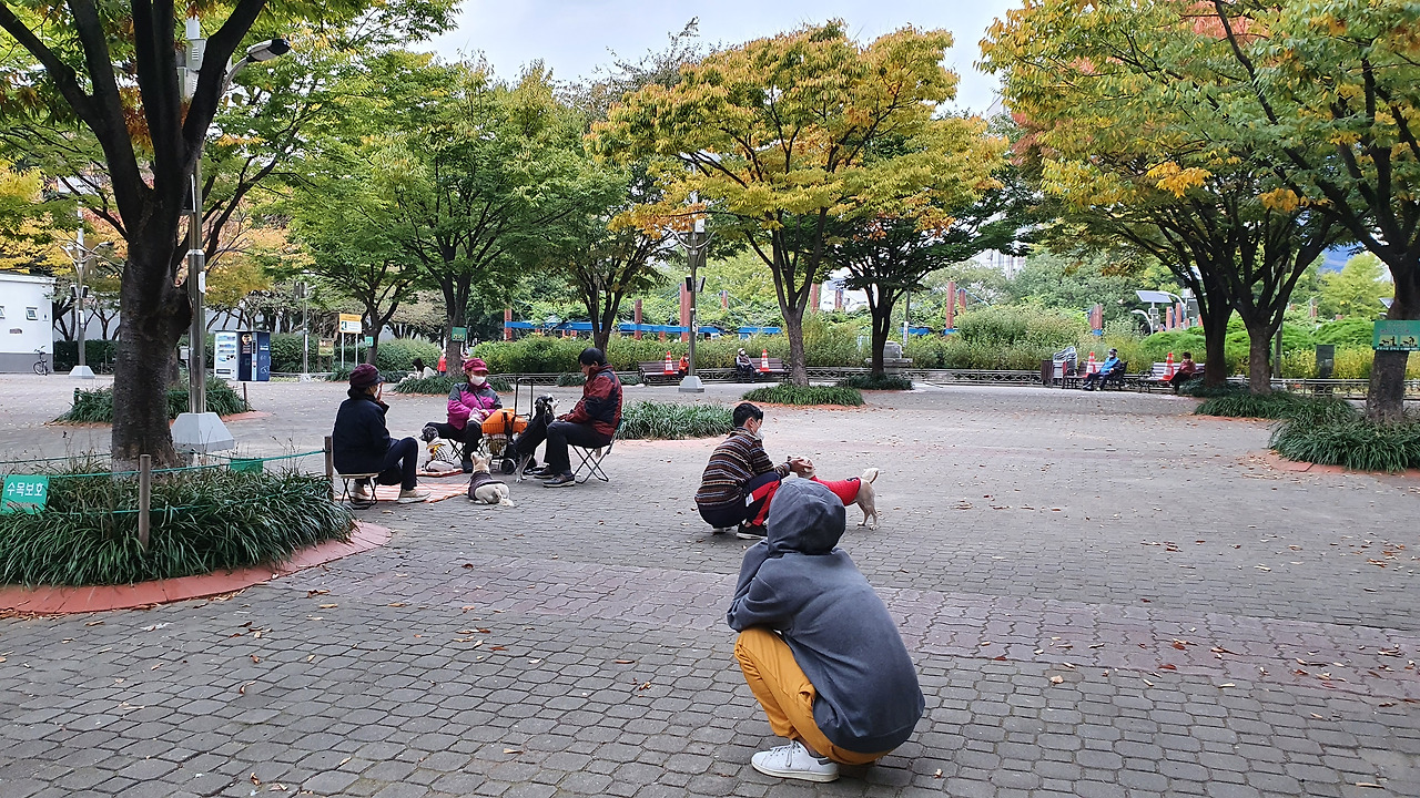 이곳에서는 코로나 시대에도 각자의 즐거움을 찾아 살아가는 사람들의 모습을 가장 많이 엿본다. 마스크를 낀 남녀노소가 자기만의 속도로 운동용 트랙을 돈다. 작은 야외공연장에서는 어머님들이 세상 누구보다 진지하게 에어로빅에 임하시고, 등나무 벤치에서는 아버님들이 모여 앉아 세상 누구보다 심각하게 장기를 두신다.