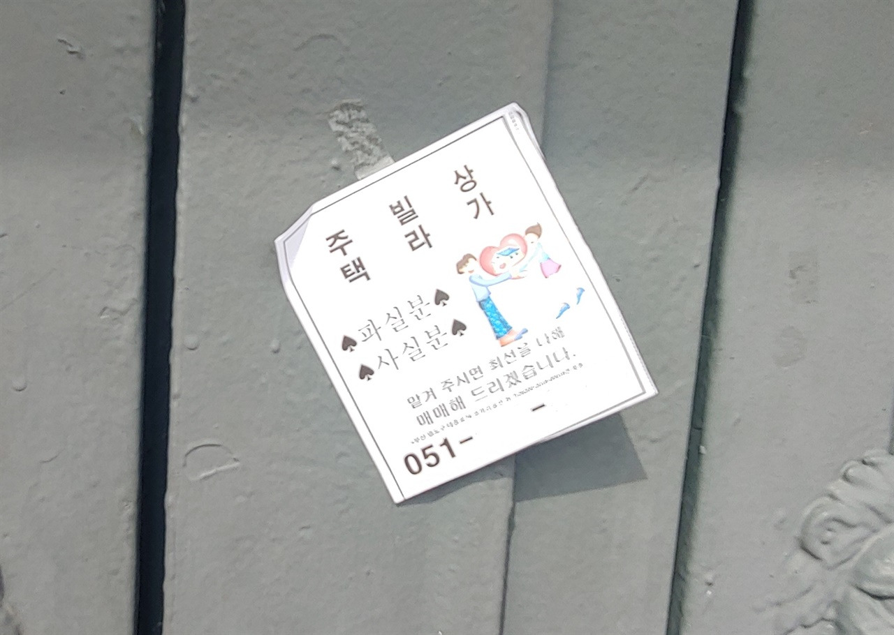 ▲ 집집마다 붙은 전단지 주민들이 떠나는 것이 당연해진 현실을 보여주는 것 같아 씁쓸했다.