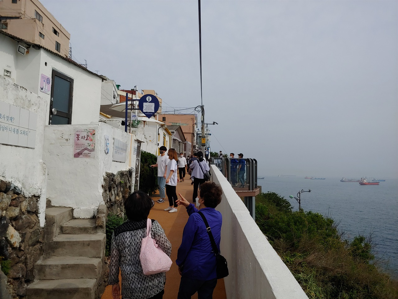 ▲ 흰여울길 공휴일이고, 오랜만에 맑게 갠 날씨라 방문객이 많았다. 마을 근처로 올라오는 차도부터 길이 막혔고, 오션뷰가 좋은 카페 앞에는 손님들이 번호표를 받아 순번대기를 하고 있었다.